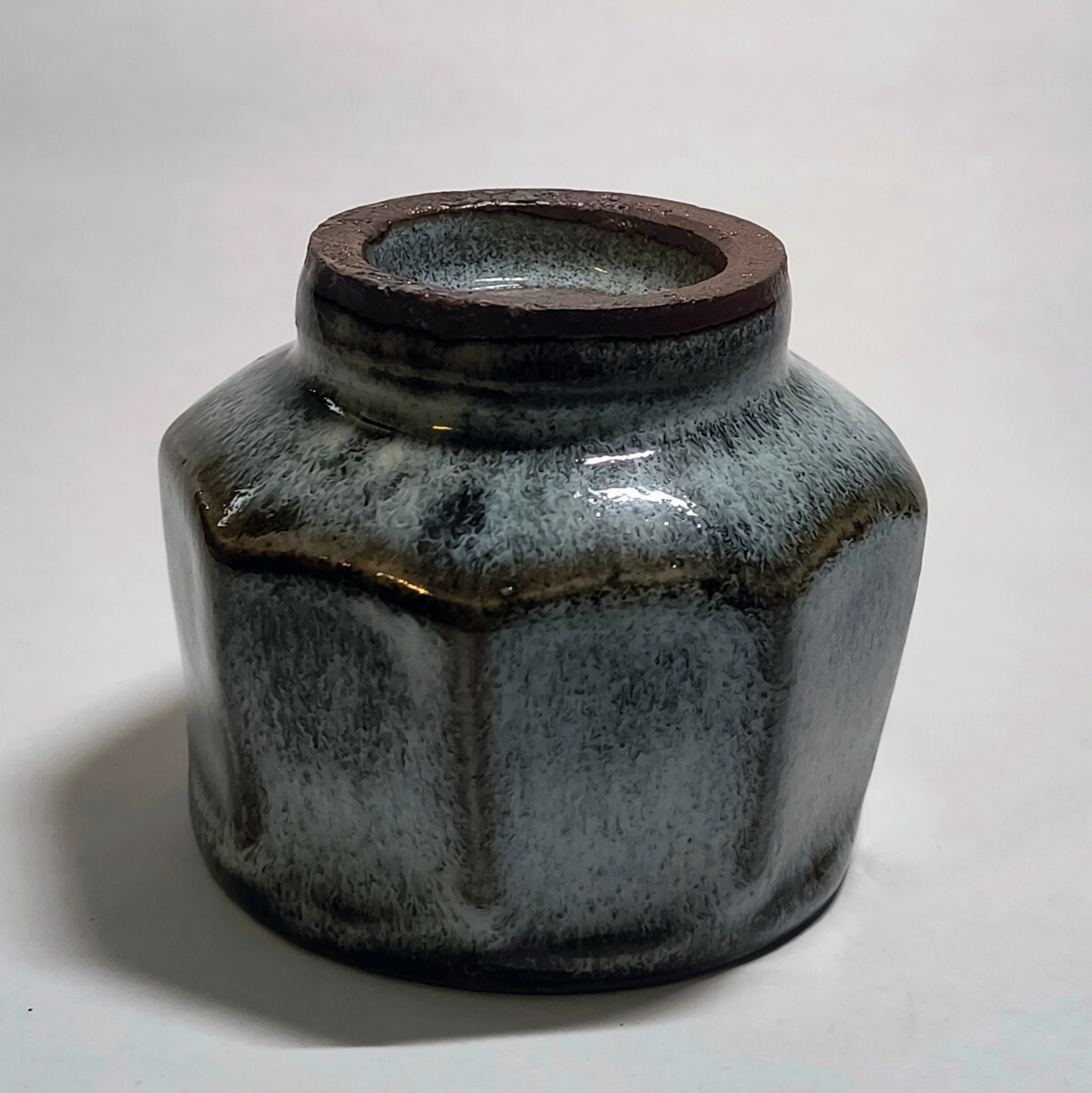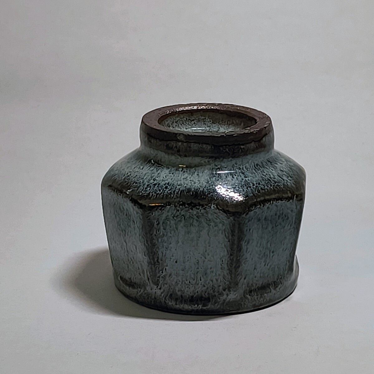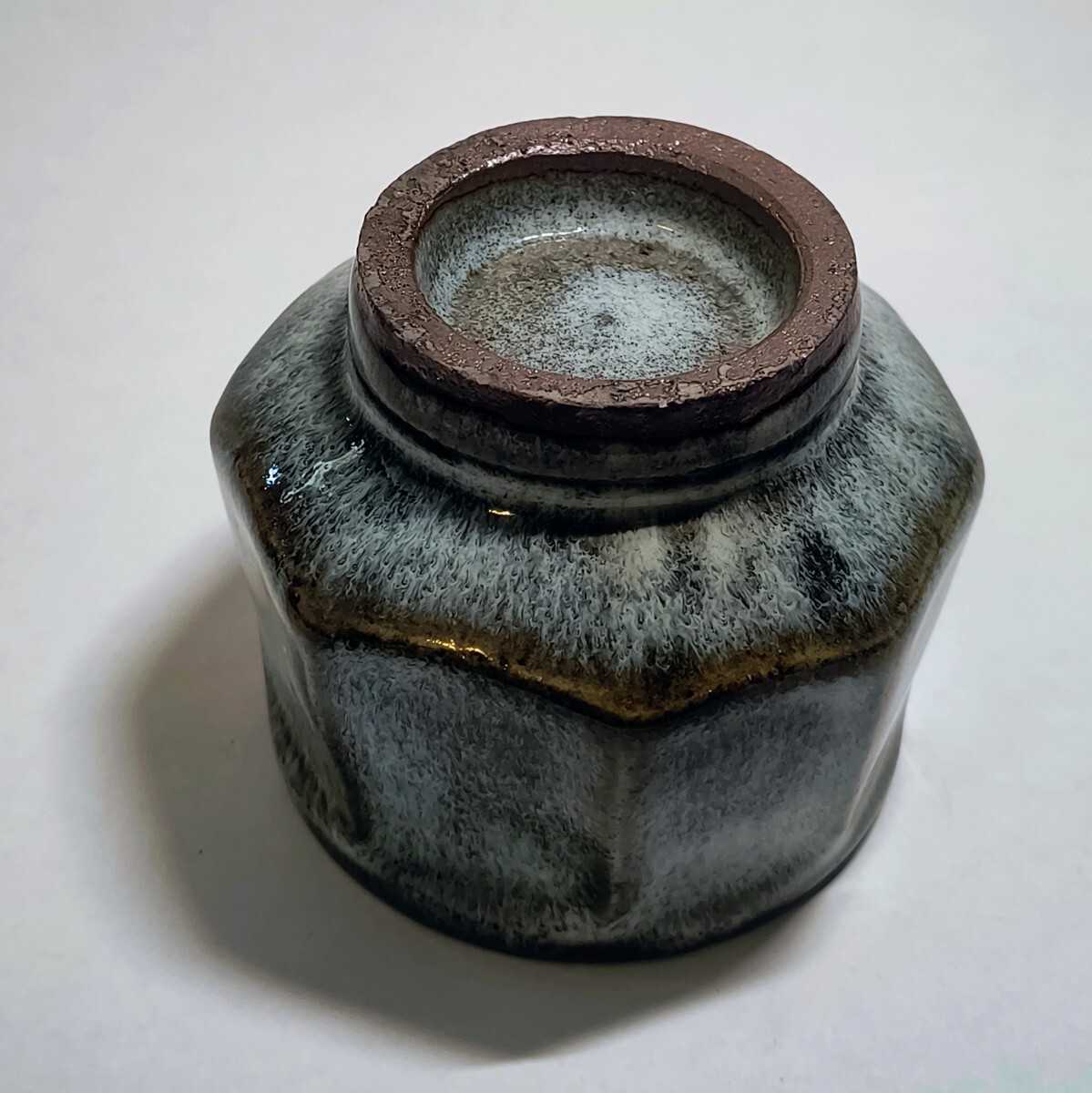 少し前の面取り湯呑です。おそらく生田和孝、生田窯のものと思いますが断定していません。海鼠釉が強く面取りに生かされているように思います。