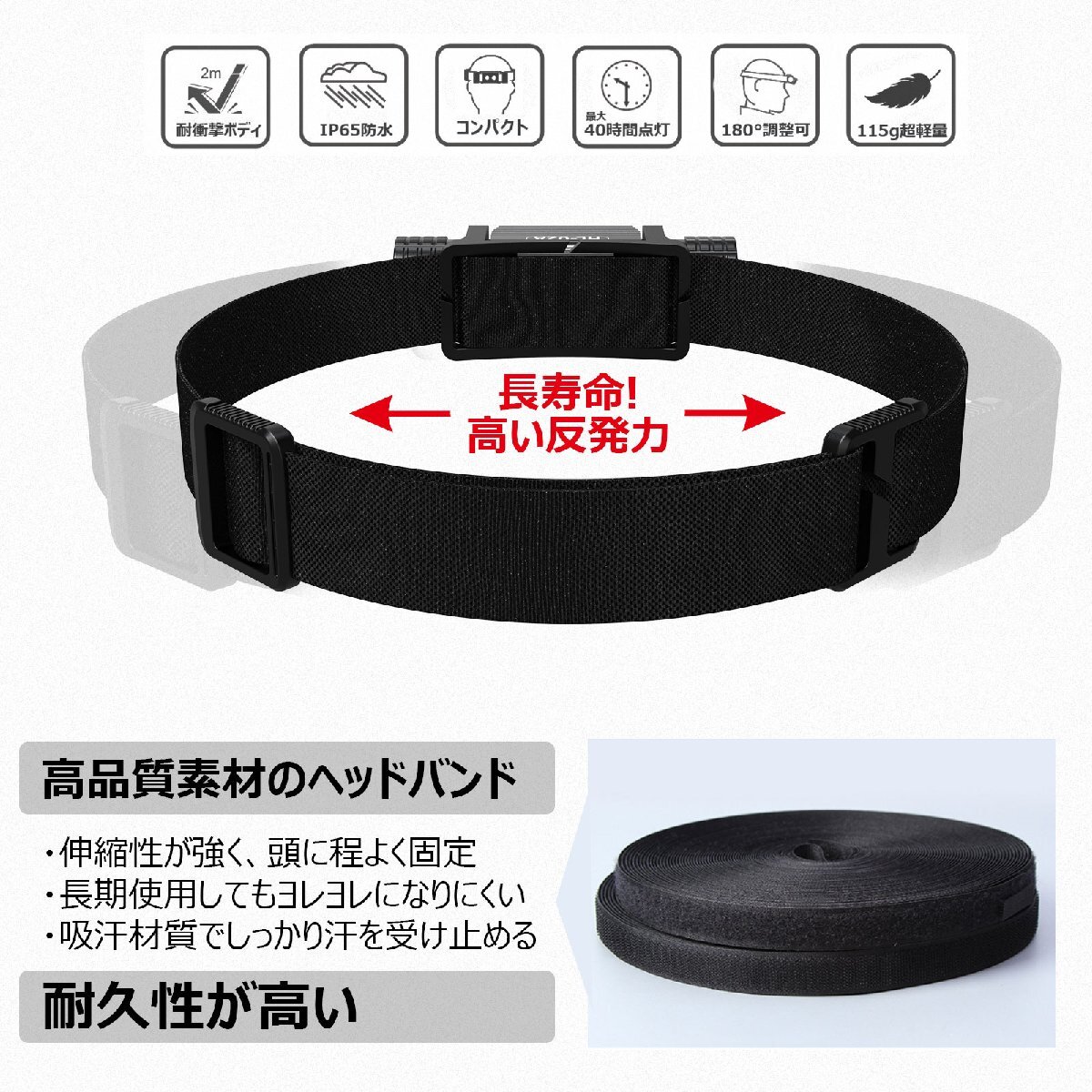 ★オススメポイント★ ●小型ながらパワフル点灯 40時間長い持続時間を実現し、最大855ルーメンの出力を備えてます。 ●負担にならない軽量さ 電池含めて約115g!夜間走行、夜釣り、登山などのアウトドア活動時に長時間で頭に付けていても疲れません。 ●角度調節可 ライト本体180°自由に照明角度を調整できます。 ●省エネで長寿命 LEDチップを使用することで約5000時間使用可能!買い替えや交換の手間が少なく済みます。 ●ライト着脱可能 ライトは取り外して懐中電灯としても使用できます。 ●IP65防塵防水 万が一の雨でも安心して使用できます。 ●使用シーン 夜釣り、キャンプ、登山、防災、停電、緊急時、作業などの必需品としてお勧めです。 ●用途 ●適度な光量で長時間点灯が可能。手作業・設備点検・夜間見回りなどに ●災害時にも手に入りやすい単4電池使用可能。非常用・避難グッズとしての備えに ●軽量・防水仕様でハイキング・アウトドア・散歩・夜釣り・手持ちや自転車の補助ライトとして