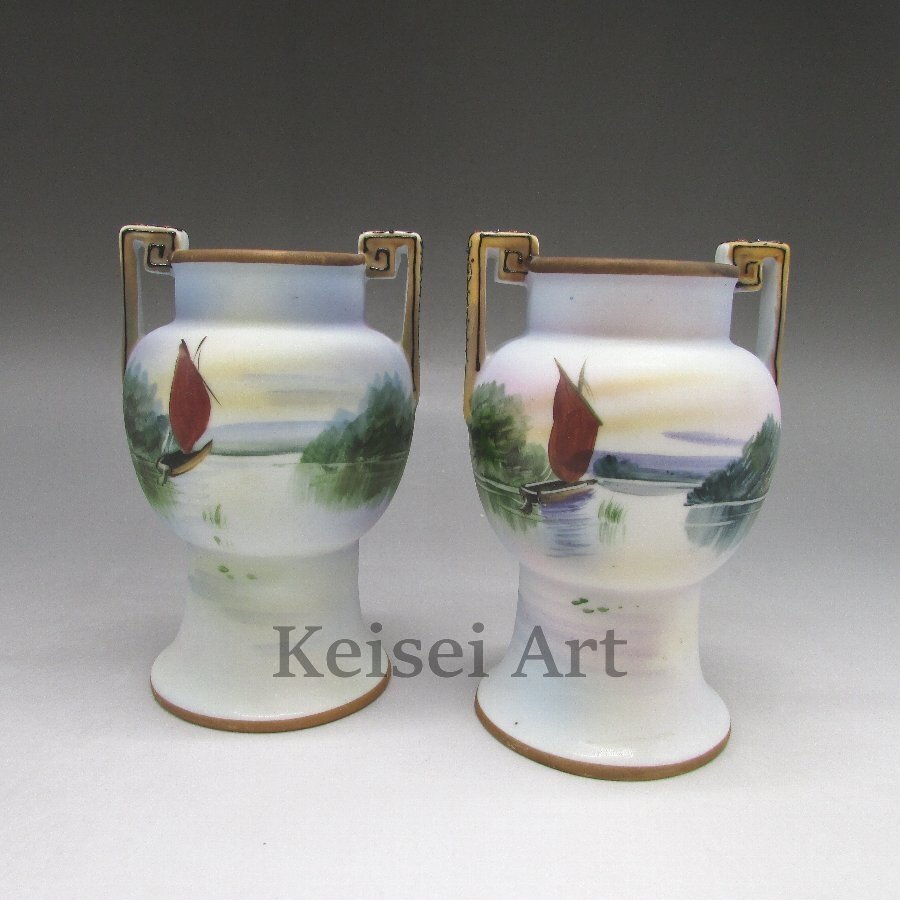 オールドノリタケ 帆船文花瓶一対 1911~1921年頃 アンティーク 米国より里帰り