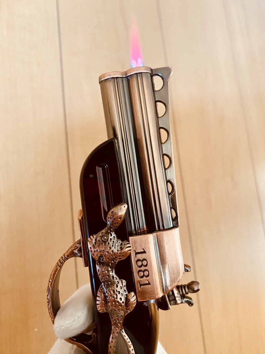 新品未使用品の火縄銃型ガスライターです。19世紀のクラシックなピストルデザインを再現した芸術的な逸品です。ヴィンテージ風の造形美と高性能の実用性を兼ね備えており、愛好家、コレクター、また特別なギフトをお探しの方におすすめしております。