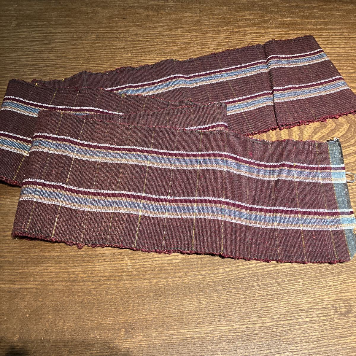 (a) Os384 裂織 半巾 半幅帯 テーブルクロス リメイク素材 丈264×巾15