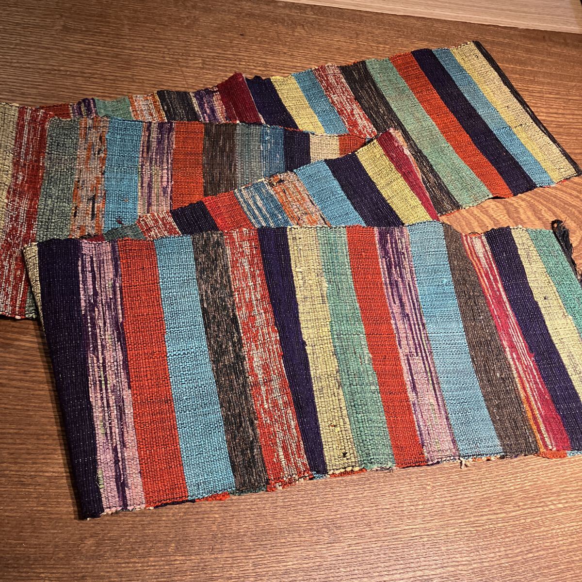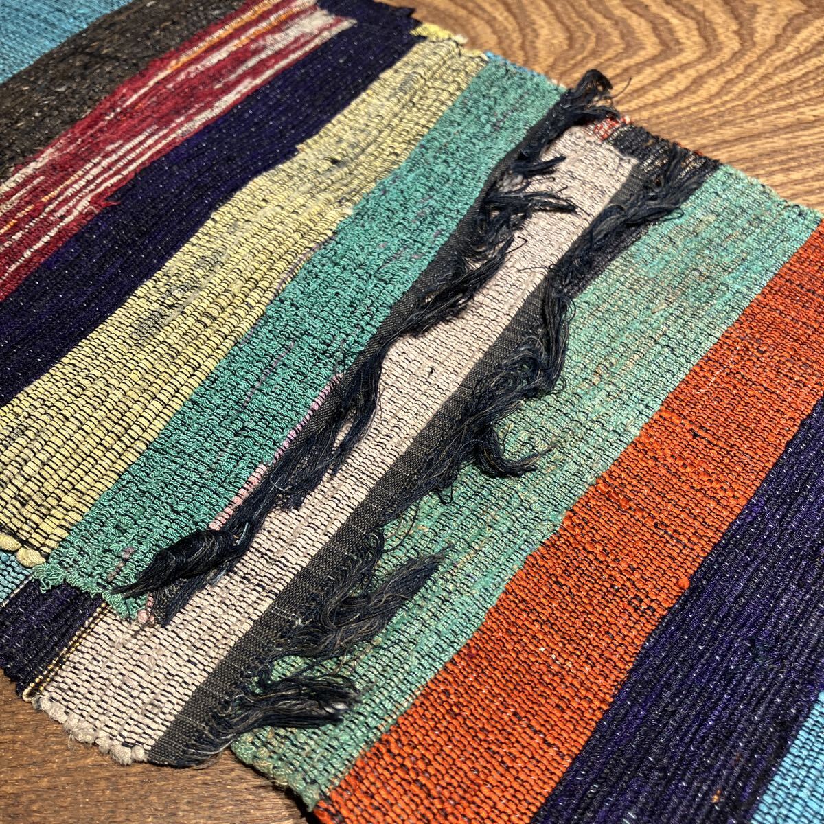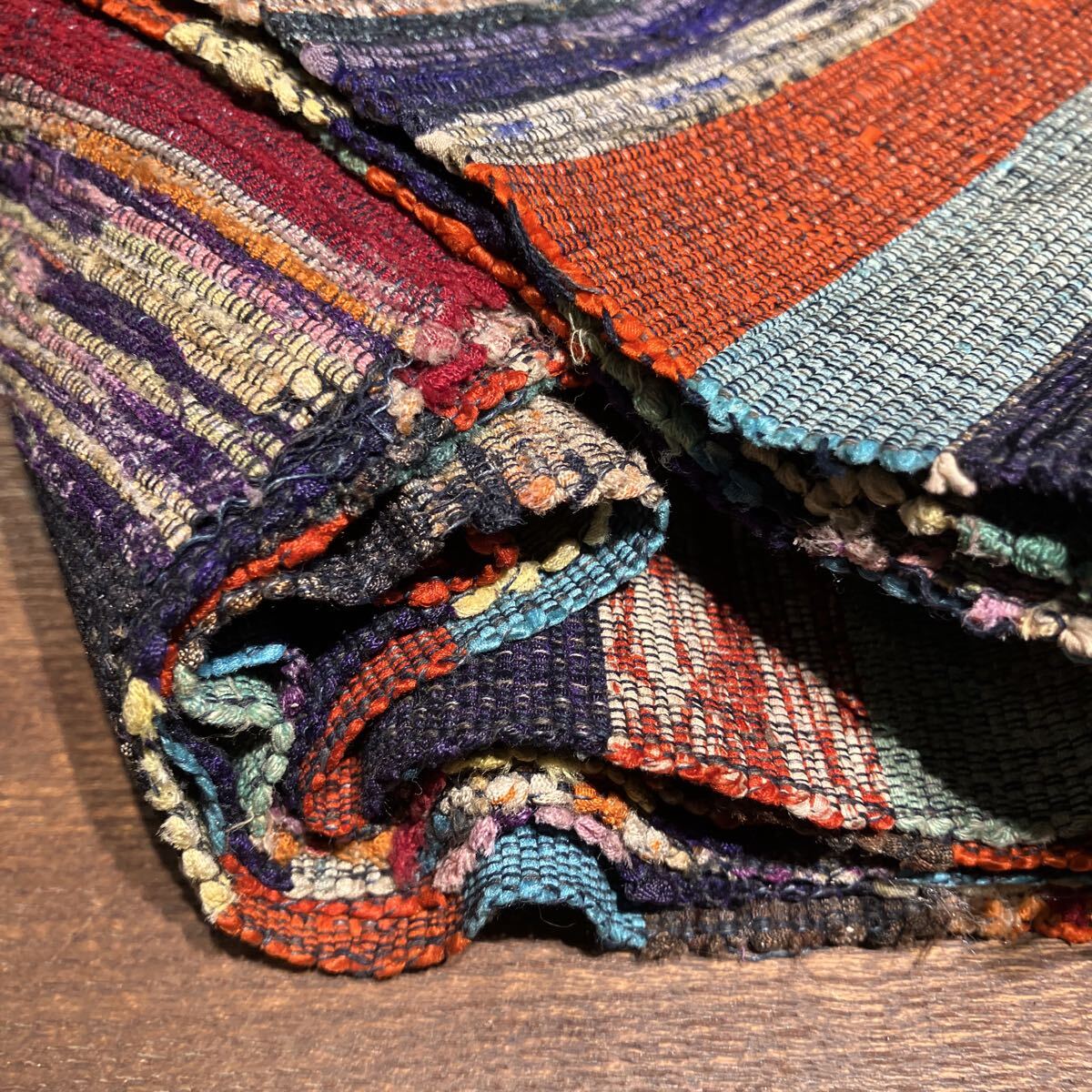 (a) Os368 裂織 半巾 半幅帯 テーブルクロス リメイク素材 丈340×巾19