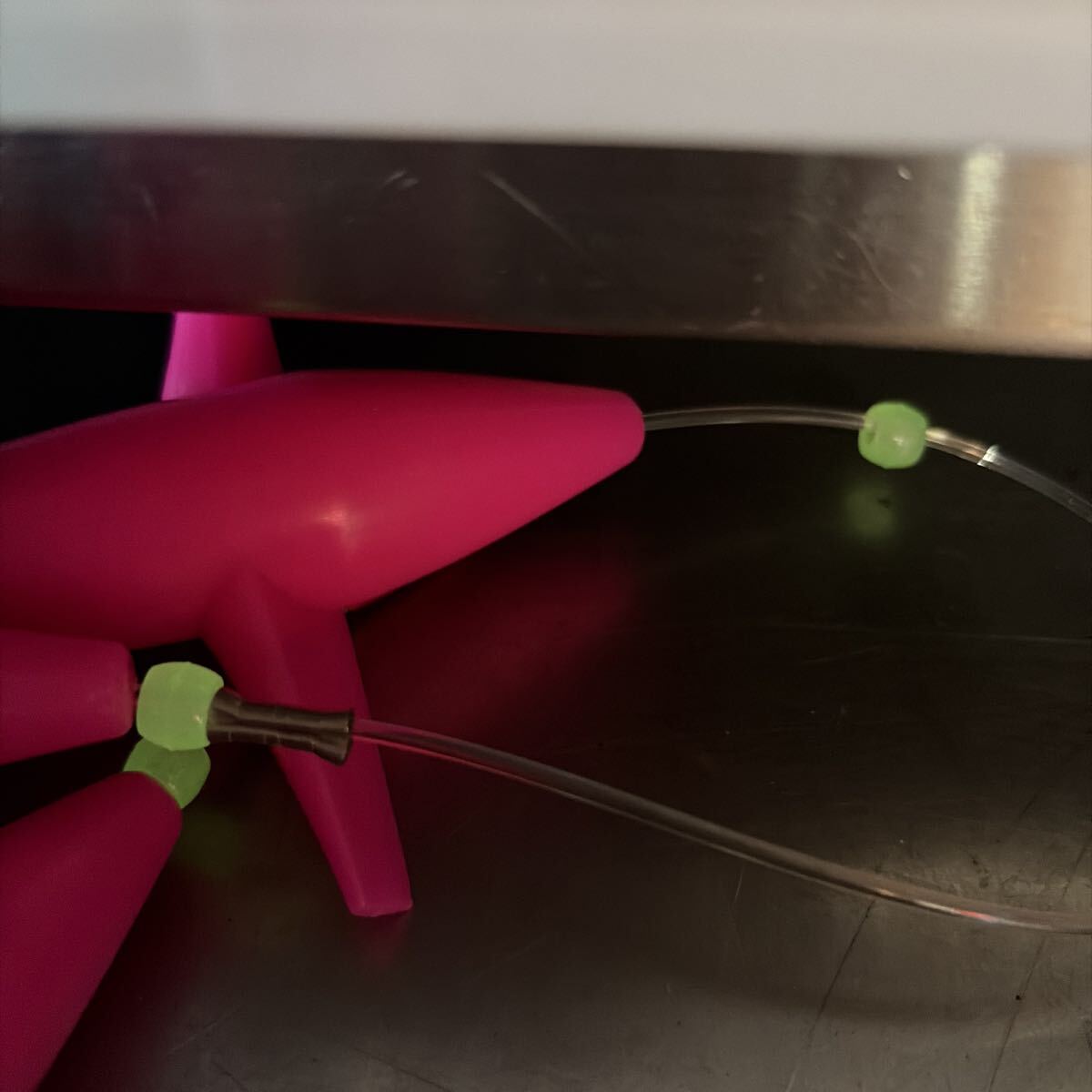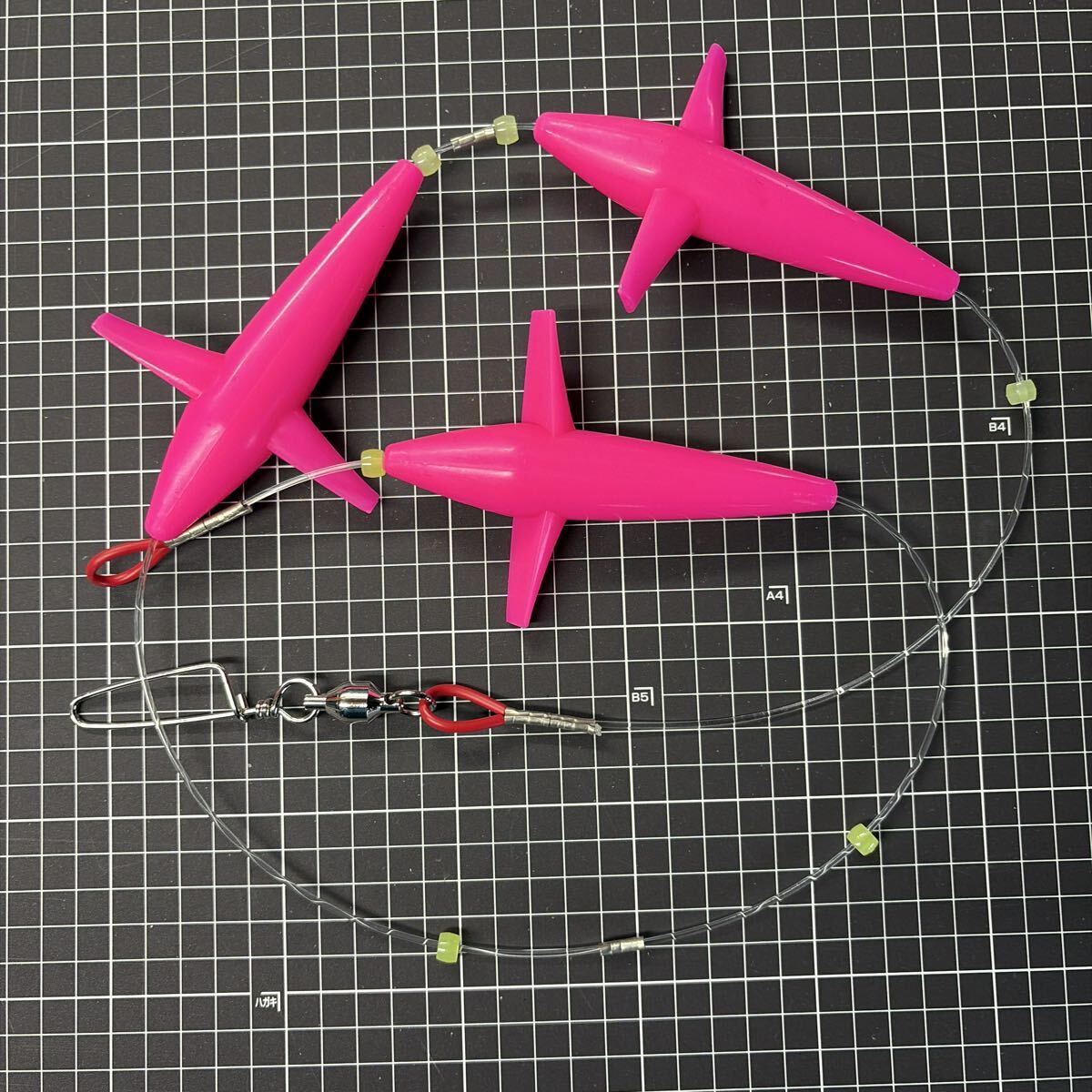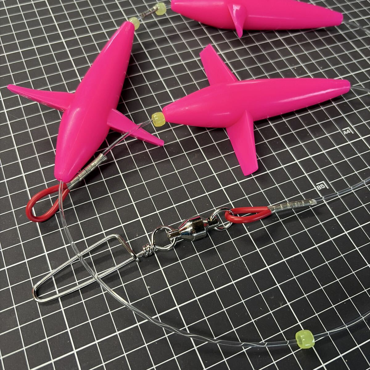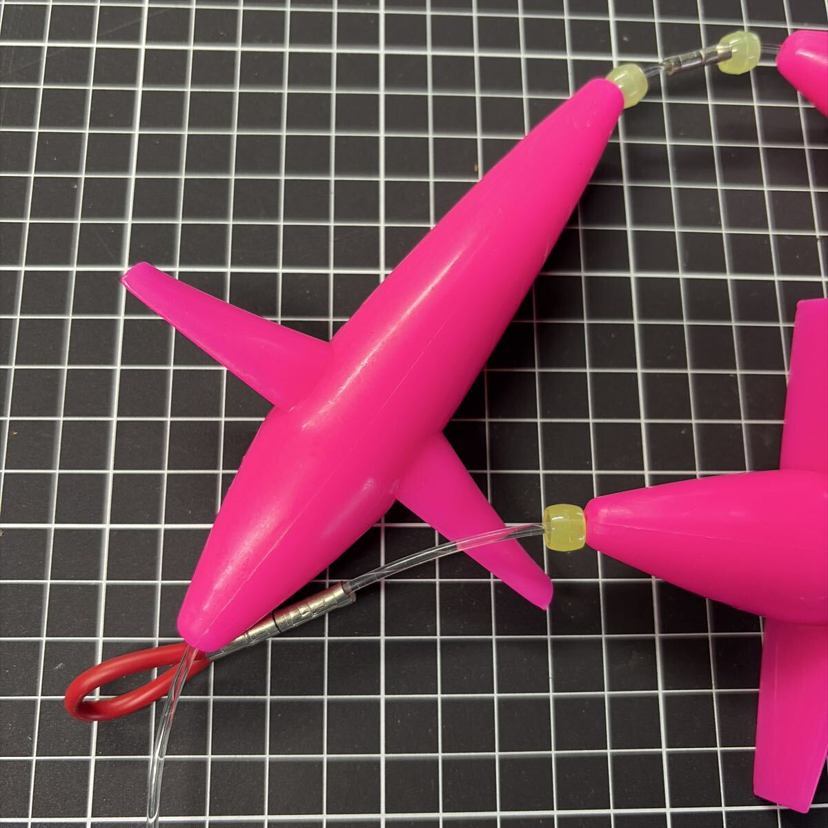 仕様説明…BBサルカン♯10強度135kg、ナイロンSOFT120号400LB(180kg)、長さ1.2m程度、クリップはYAMASHITAのステンレスクリップを前後ダブルで止めてます。ビーズは写真4枚目の様にグローになります。よろしくお願いします