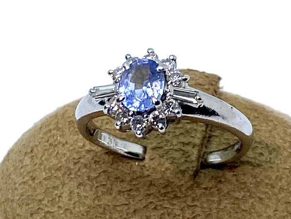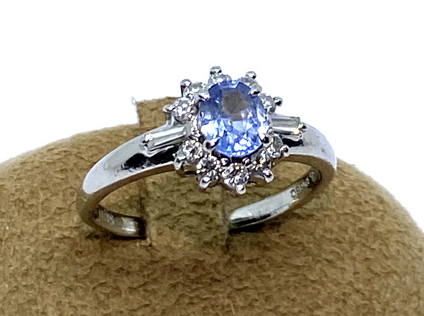 【即決/12.5号】 PT850 サファイア リング S:0.67ct D:0.35ct 指輪 ブルーサファイア ジュエリー プラチナ ジュエリーマキ 4.3g