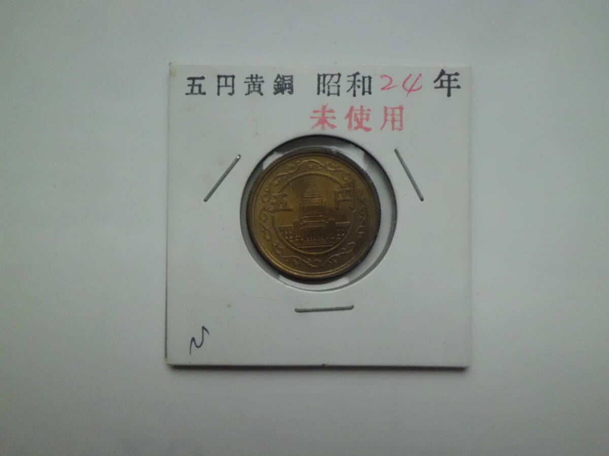 穴なし5円黄銅貨 昭和24年 未使用