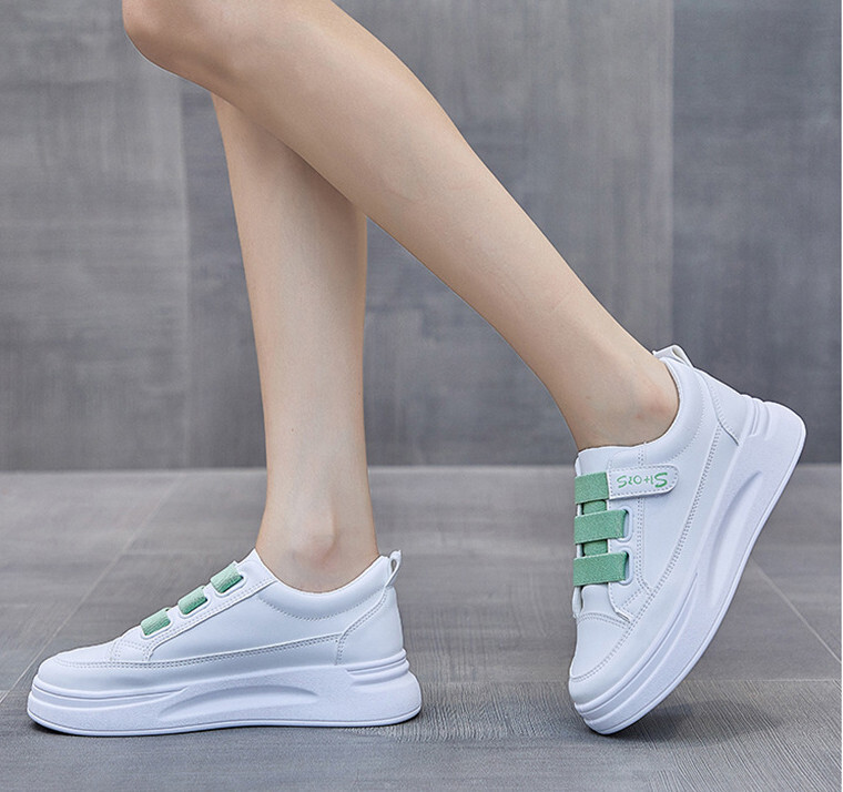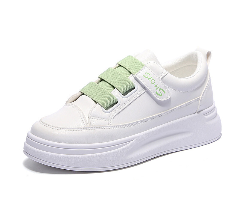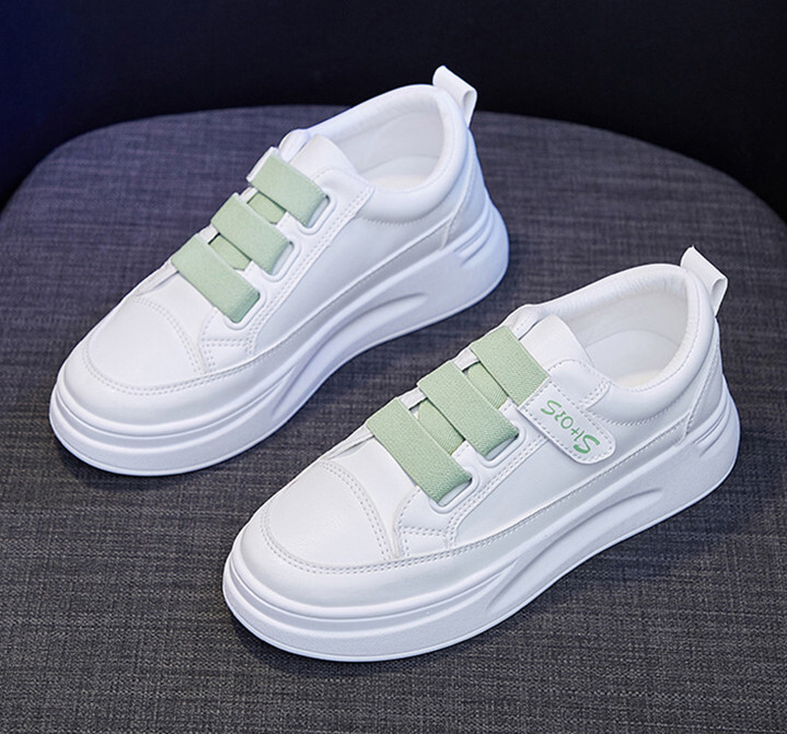 厚底スニーカー ローカット マジックテープ おしゃれ フラットシューズ バイカラー 美脚 シューズ 歩きやすい 疲れない グリーン 23cm