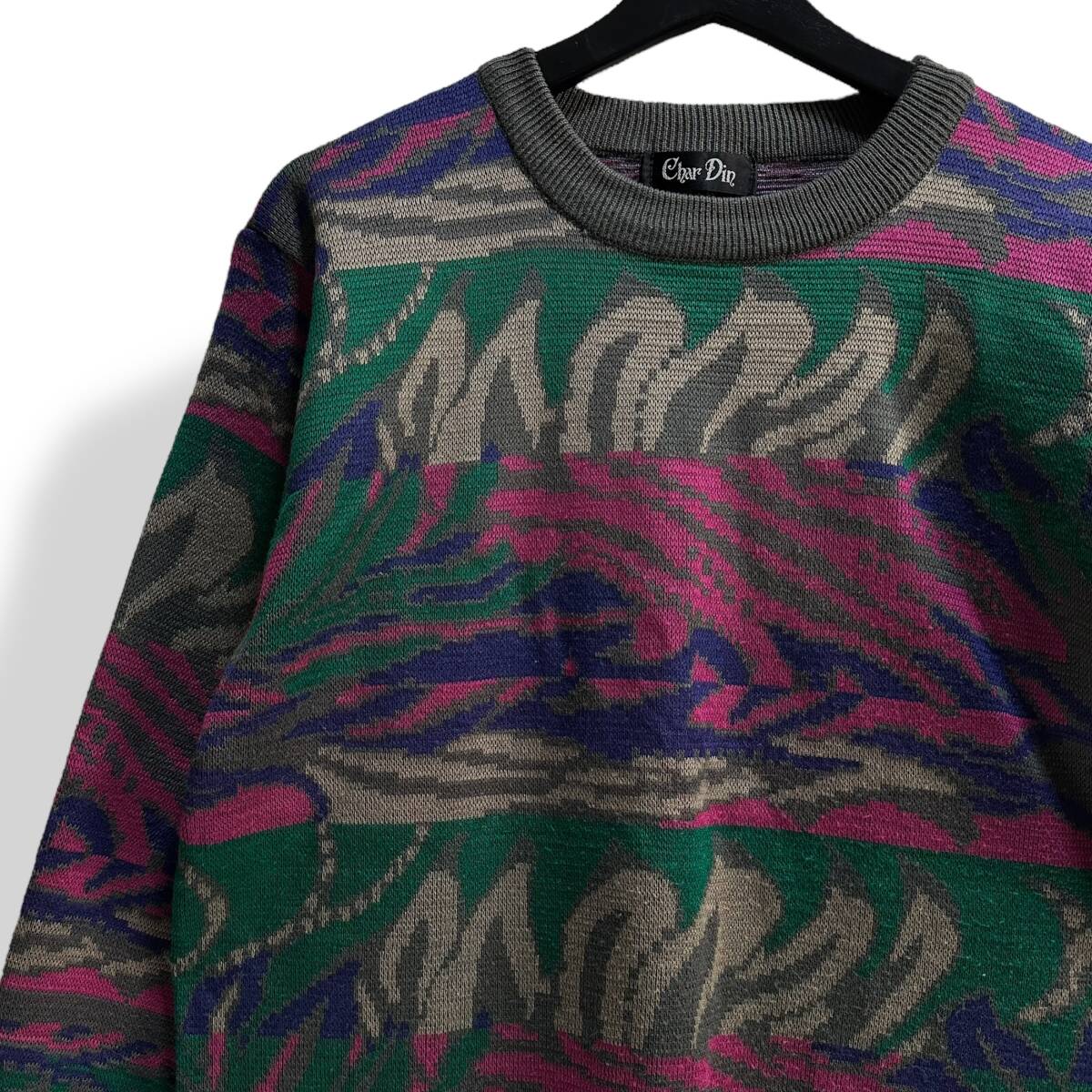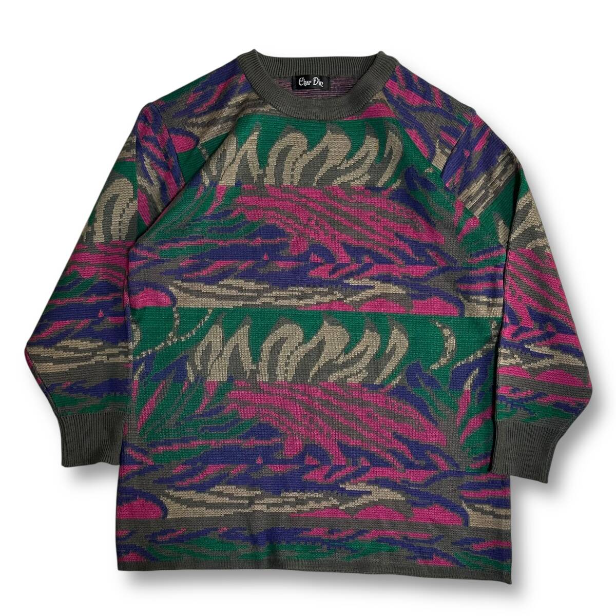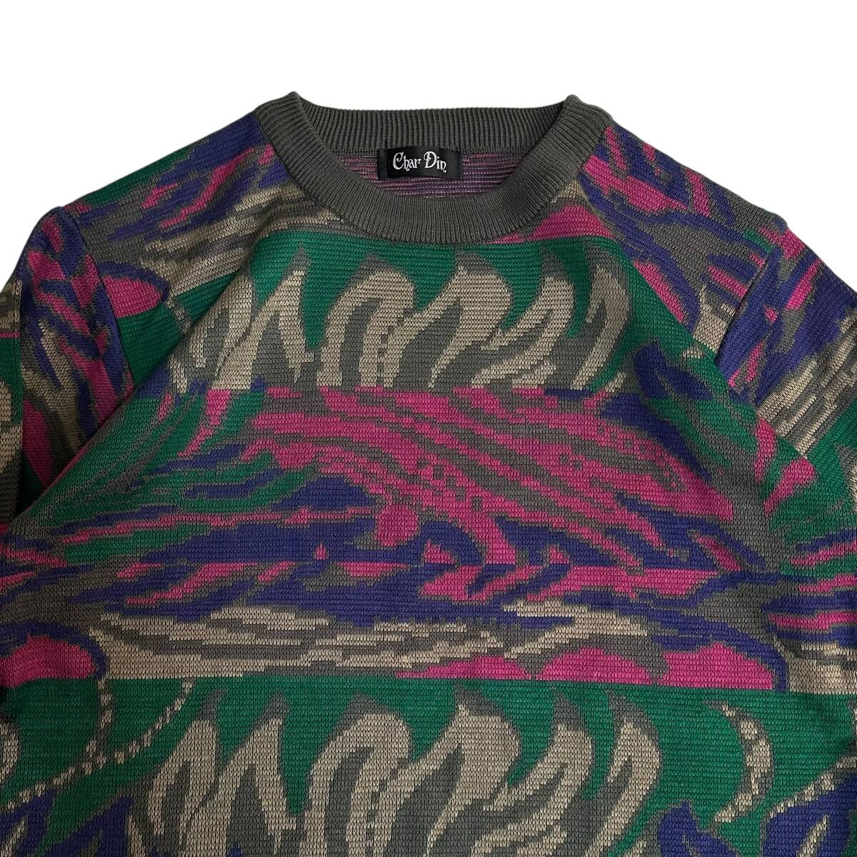 レア【Char Din】VINTAGE 80s 90s 総柄 アートデザイン レトロビンテージニット 昭和レトロ 個性的 派手ニット