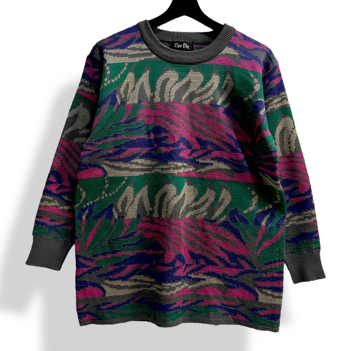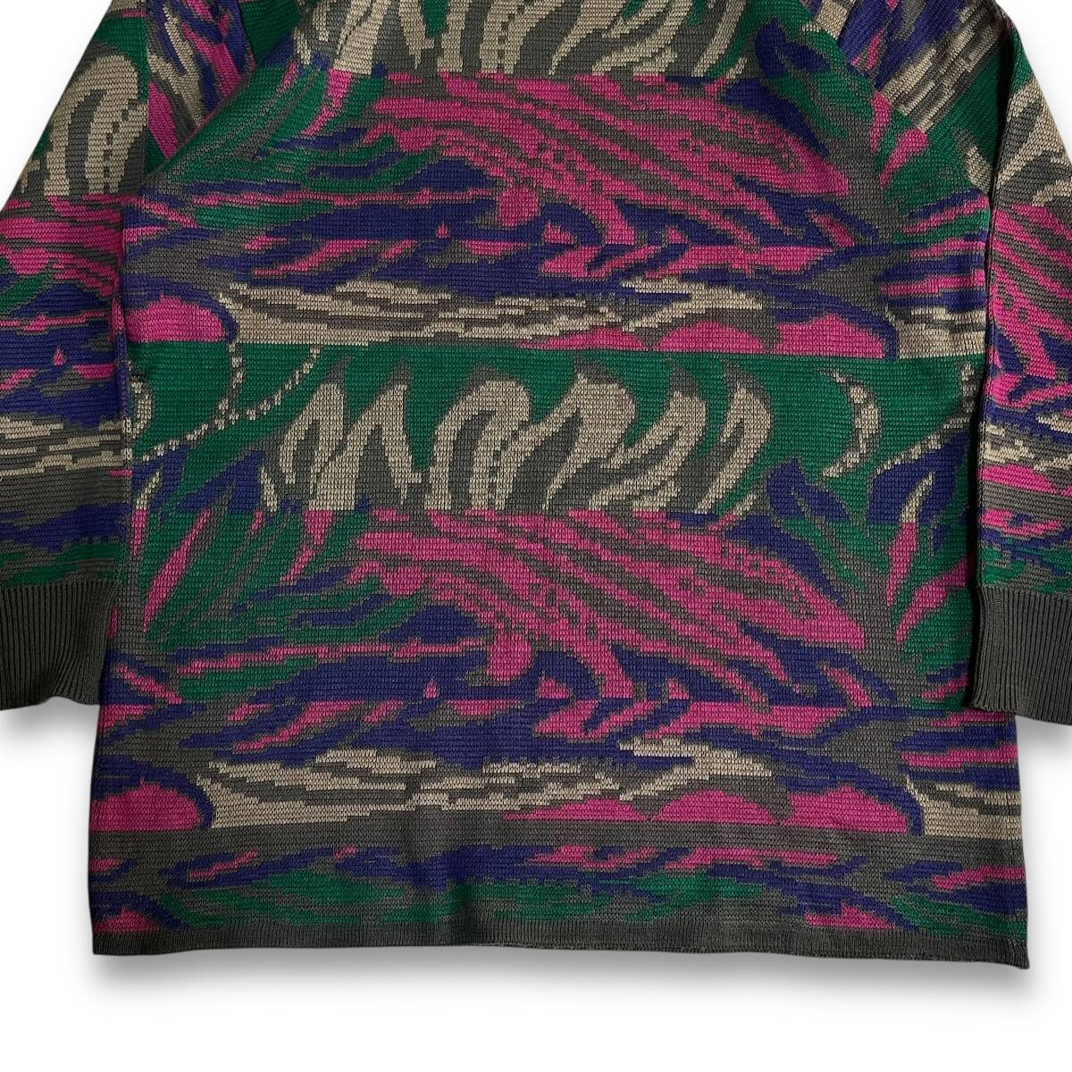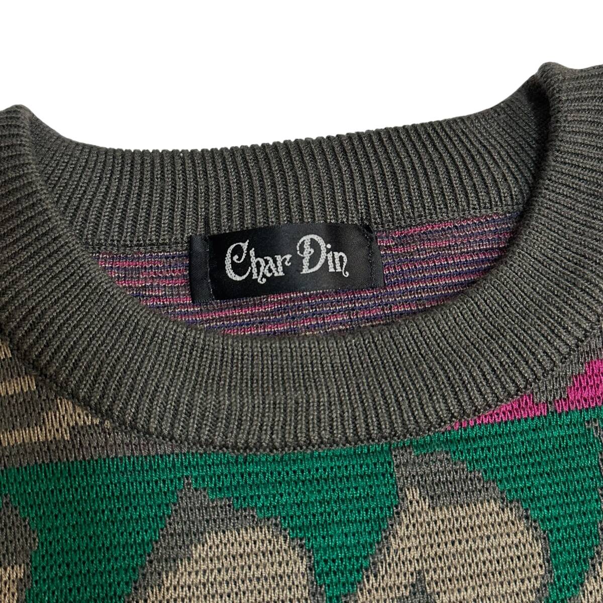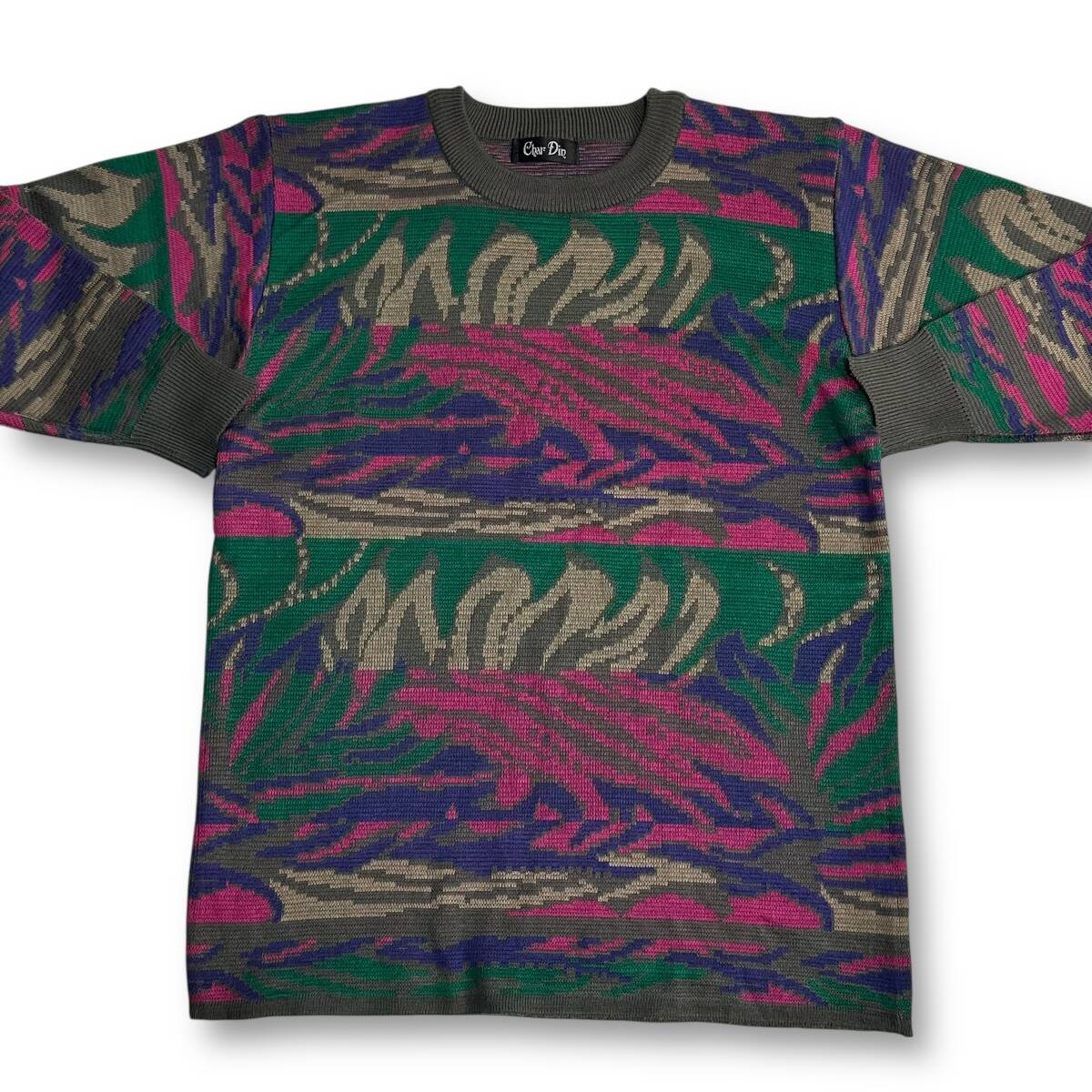 レア【Char Din】VINTAGE 80s 90s 総柄 アートデザイン レトロビンテージニット 昭和レトロ 個性的 派手ニット