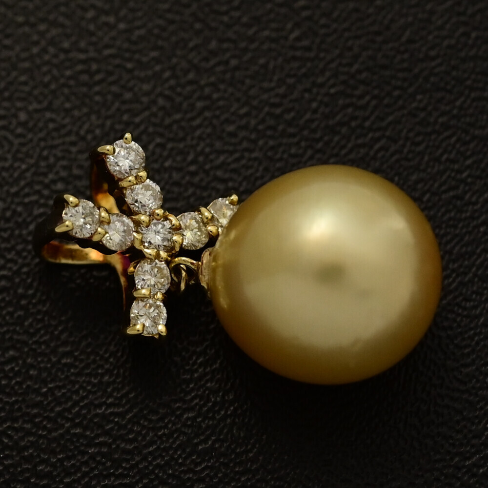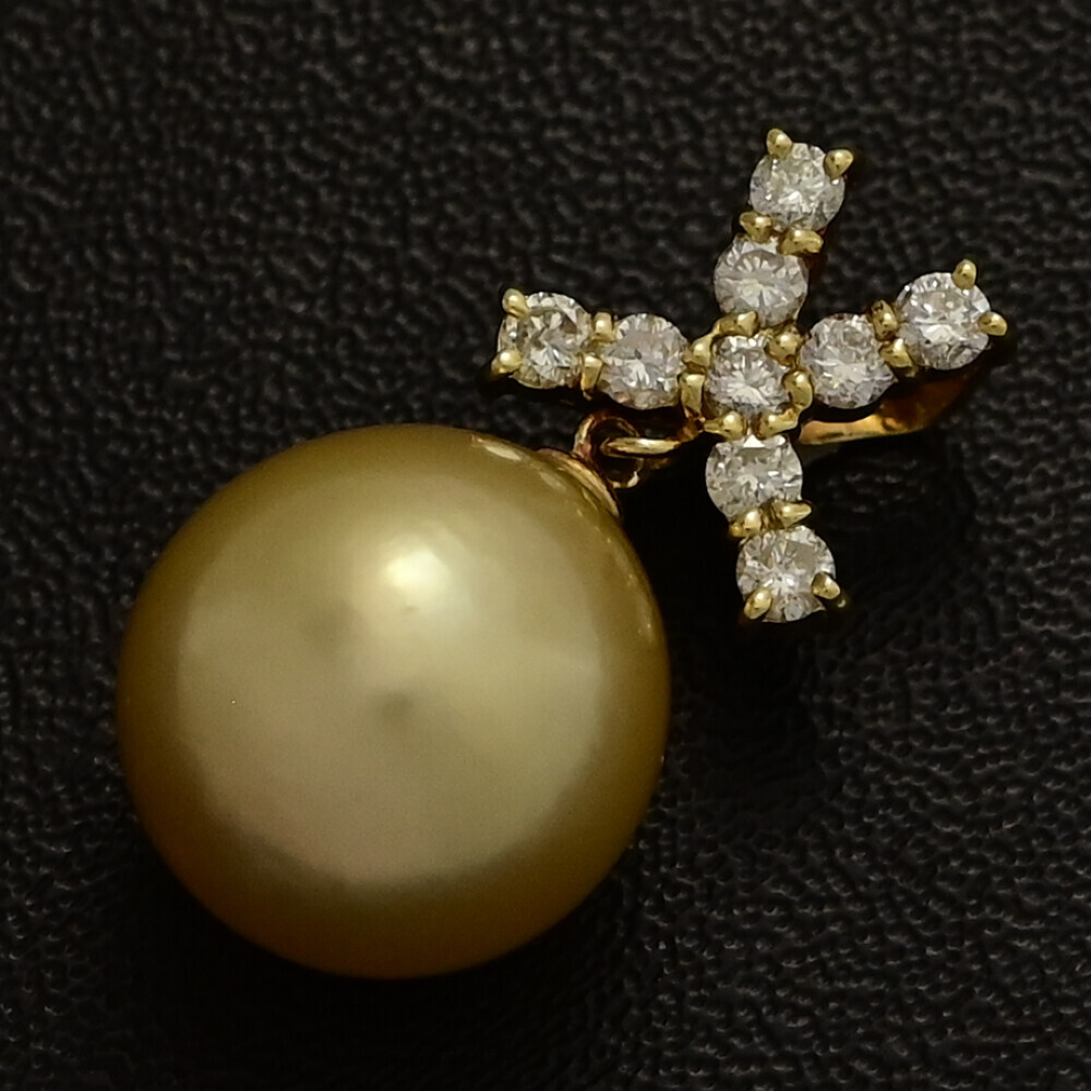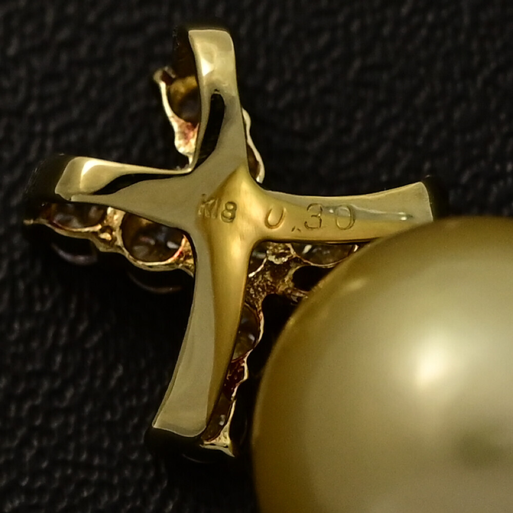 | 11.6mm/0.3ct/クロスモチーフ 1P 白蝶ゴールドリップ サウスシー ゴールドパール ダイヤモンド ペンダントトップ/K18YG/750-3.4g お問合せ番号 ■593693 (MY8A1072U) | |