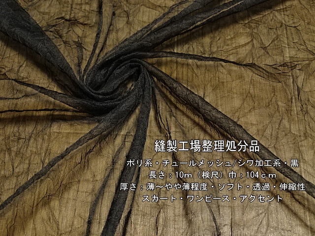 ポリ系 チュールメッシュ シワ加工系 薄~やや薄 黒 14.4m最終 | |