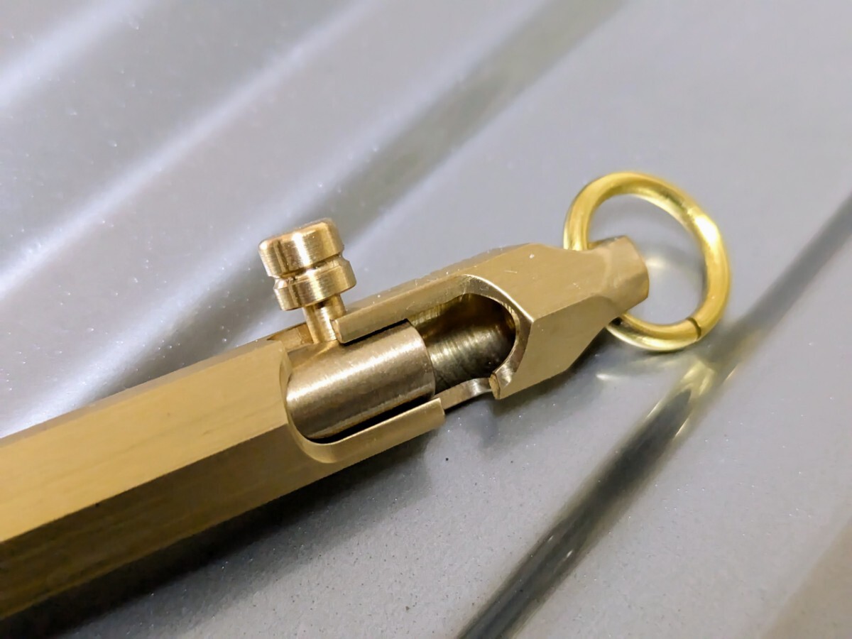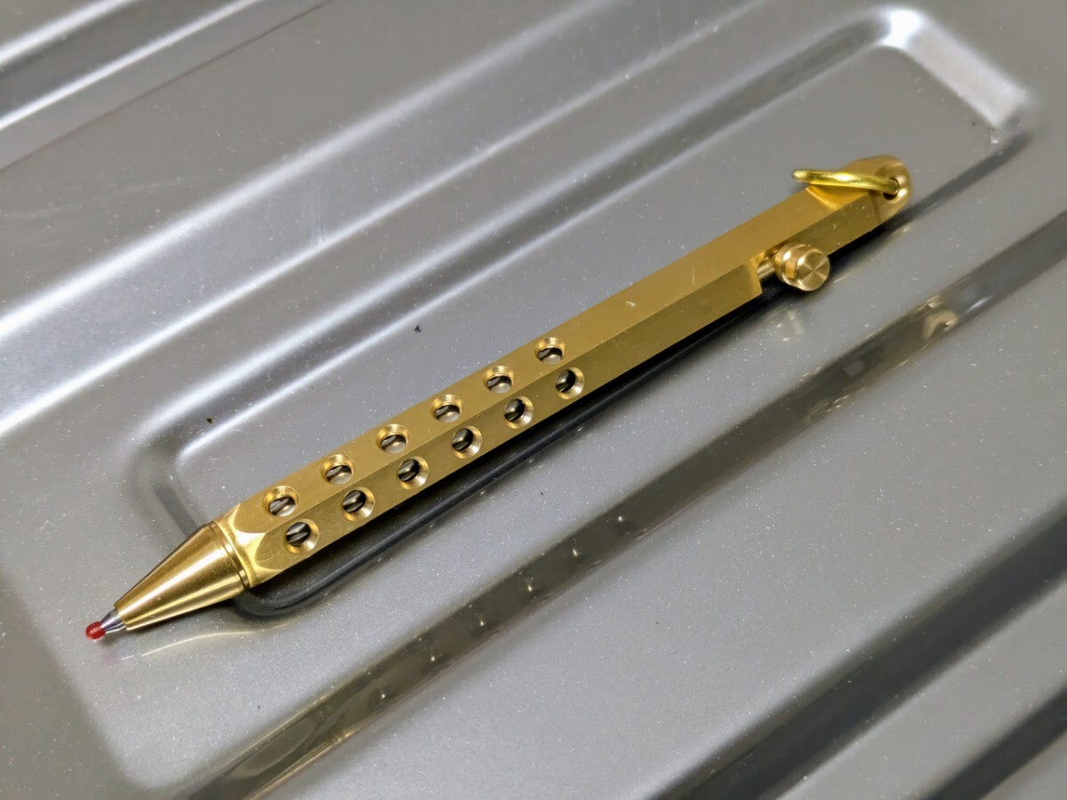 ボルトアクションのギミック付きの真鍮ボディーボールペンです。