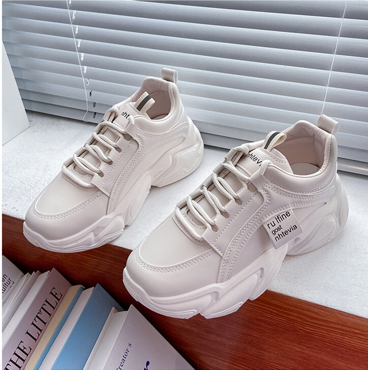 厚底スニーカー ダッドスニーカー 美脚 シューズ 歩きやすい カッコイイ ガーリー スポーティー ストリート カジュアル ベージュ 23.5CM
