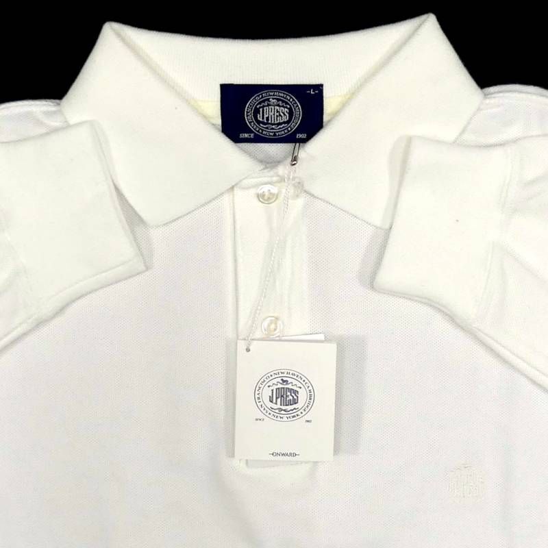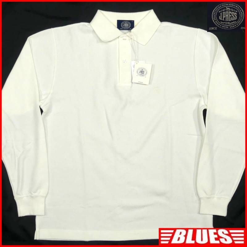 即決★J.PRESS★未使用 メンズ L ポロシャツ ジェイプレス 白 ホワイト 刺繍 長袖シャツ 長袖 ロゴ