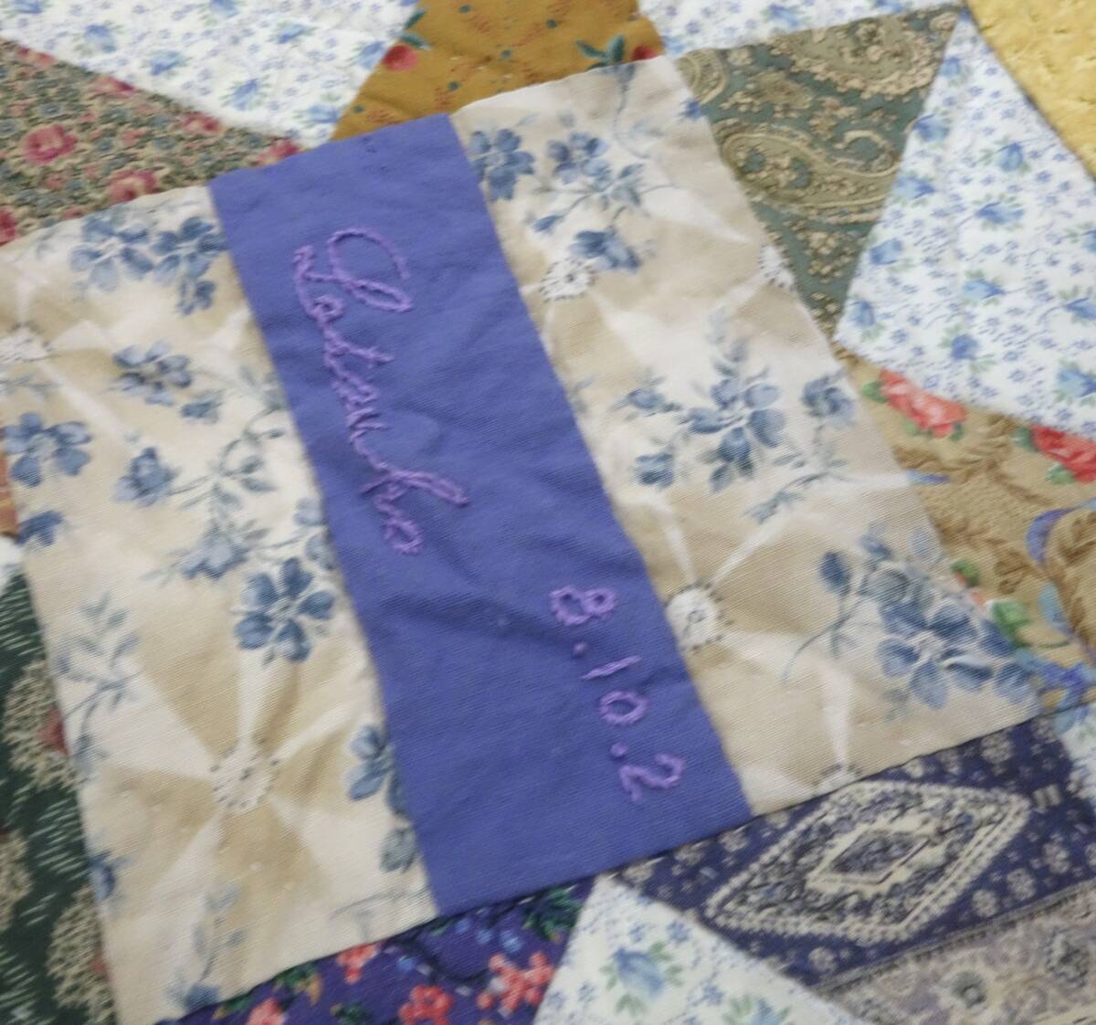 複数のパッチワークパターンを一枚にまとめたサンプラーキルトです。