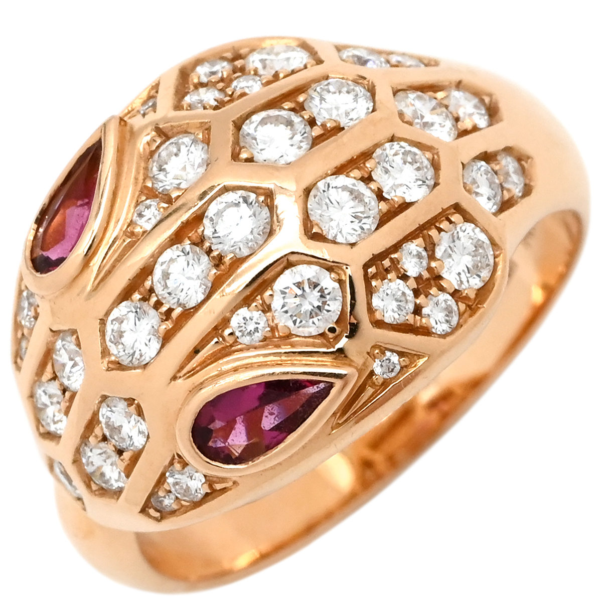 | ブルガリ BVLGARI リング 指輪 K18PG ダイヤモンド ルベライト ピンクゴールド750Au 18K スネーク ダイヤ - 14号 レディース定番 人気 美品 中古 | |