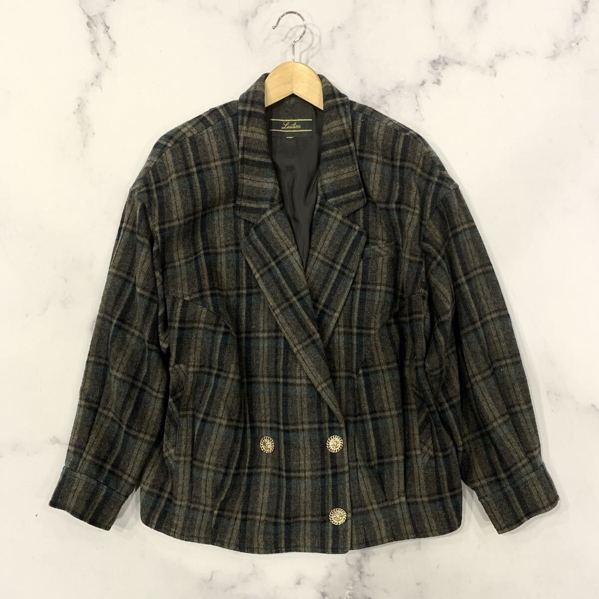 K ▼ 日本製 'チェック柄' Leilian レリアン ウール混 ダブル テーラードジャケット 13 レディース 婦人服 アウター