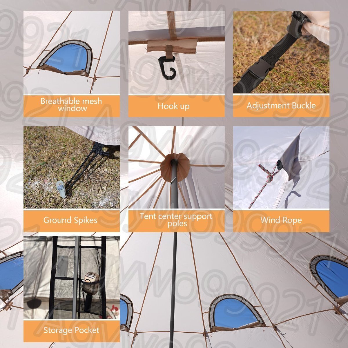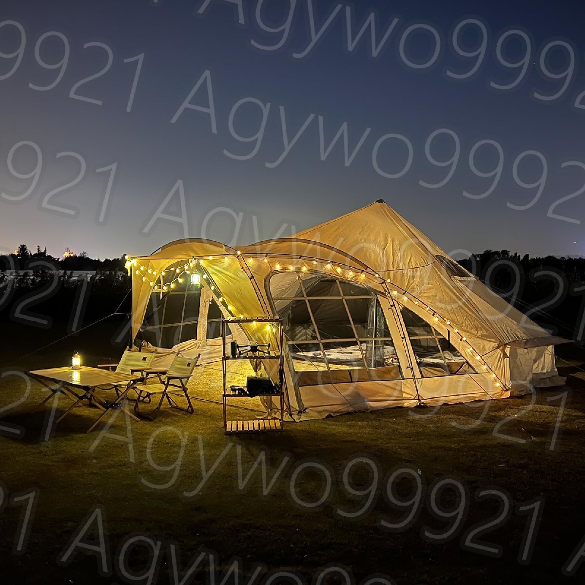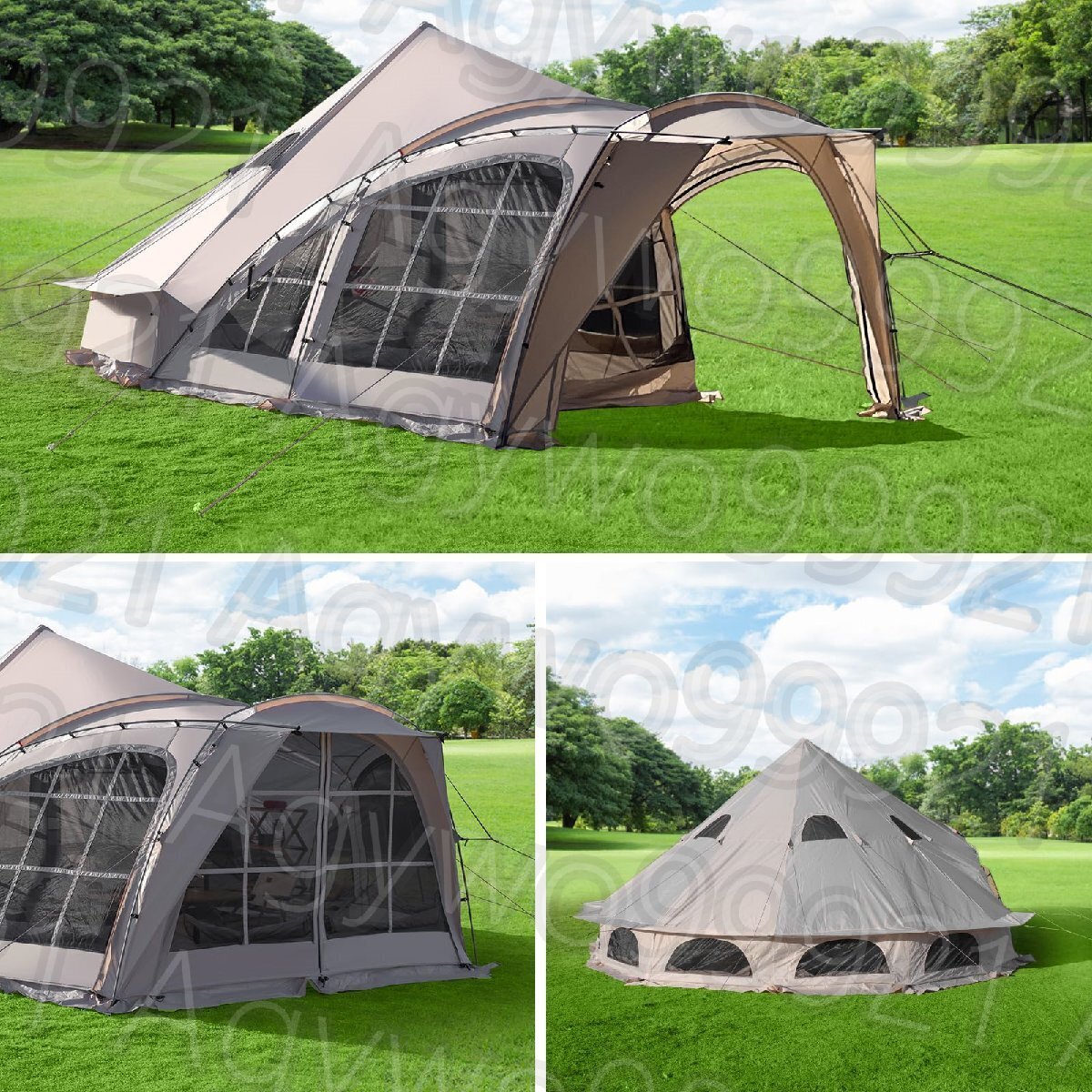 【オールシーズン対応】トンネルテントのアウターカバーとメッシュ2層構造を通して、開くと通気性が良く、フルメッシュが虫の侵入を防ぎ、夏のキャンプを楽にします。 雨や雪の侵入を防ぐために完全に閉じています。固定されたスノーモービルは足元から冷たい空気に入らず、テント内で暖房器具を使用しているため、冬のキャンプも非常に暖かいです。