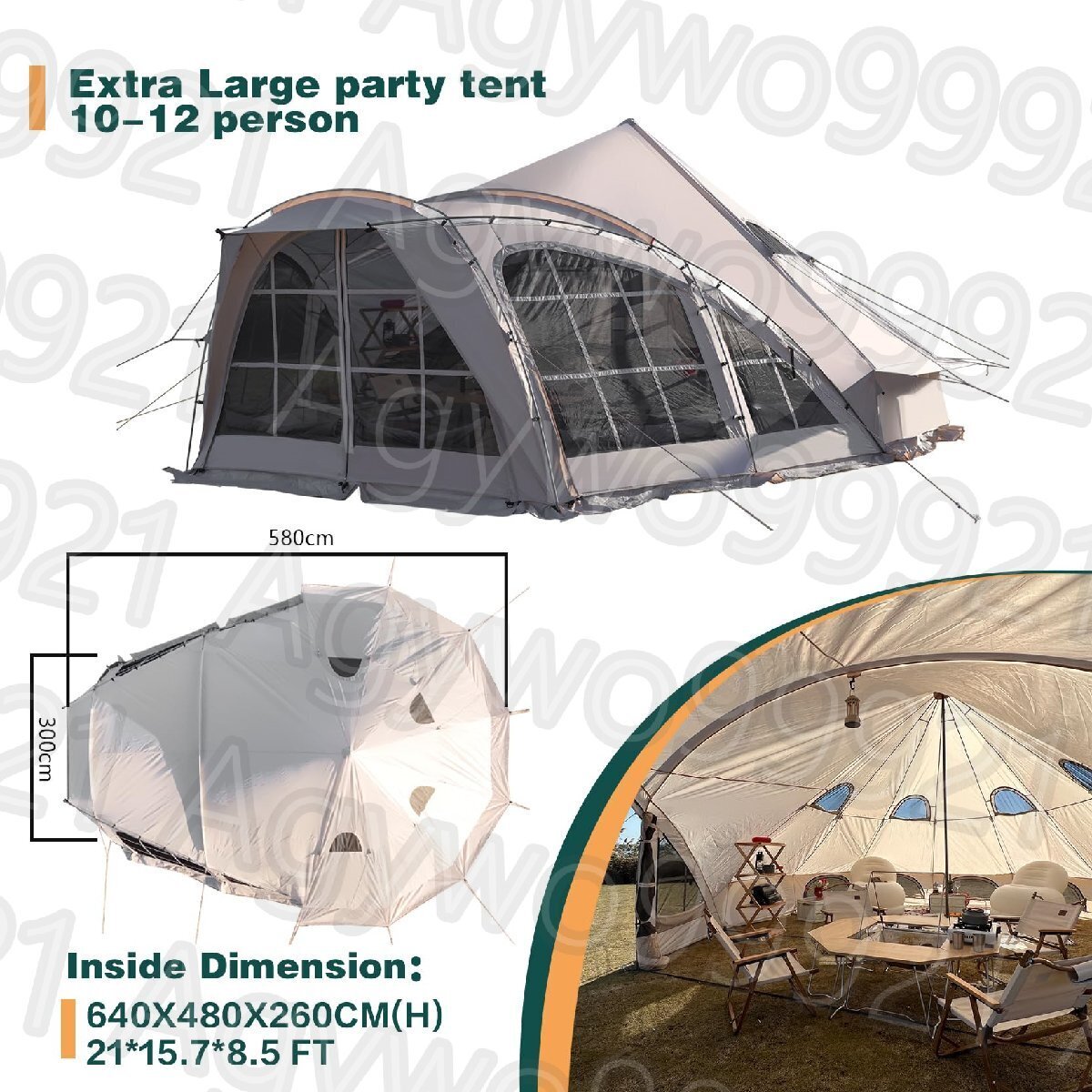 【広いスペーステント】床のないサンテントとしても使える:長さ640cm、幅480cmの特大サイズ、長いテーブルが2つ、8~12人用、高さ約260cmなので、背の高い方でも窮屈を感じません。 家族や友人に実用的。