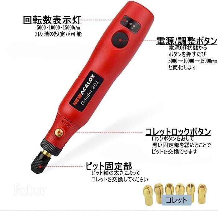回転スピードは5000rpm 10000rpm、15000rpm3段階に変更可能です。