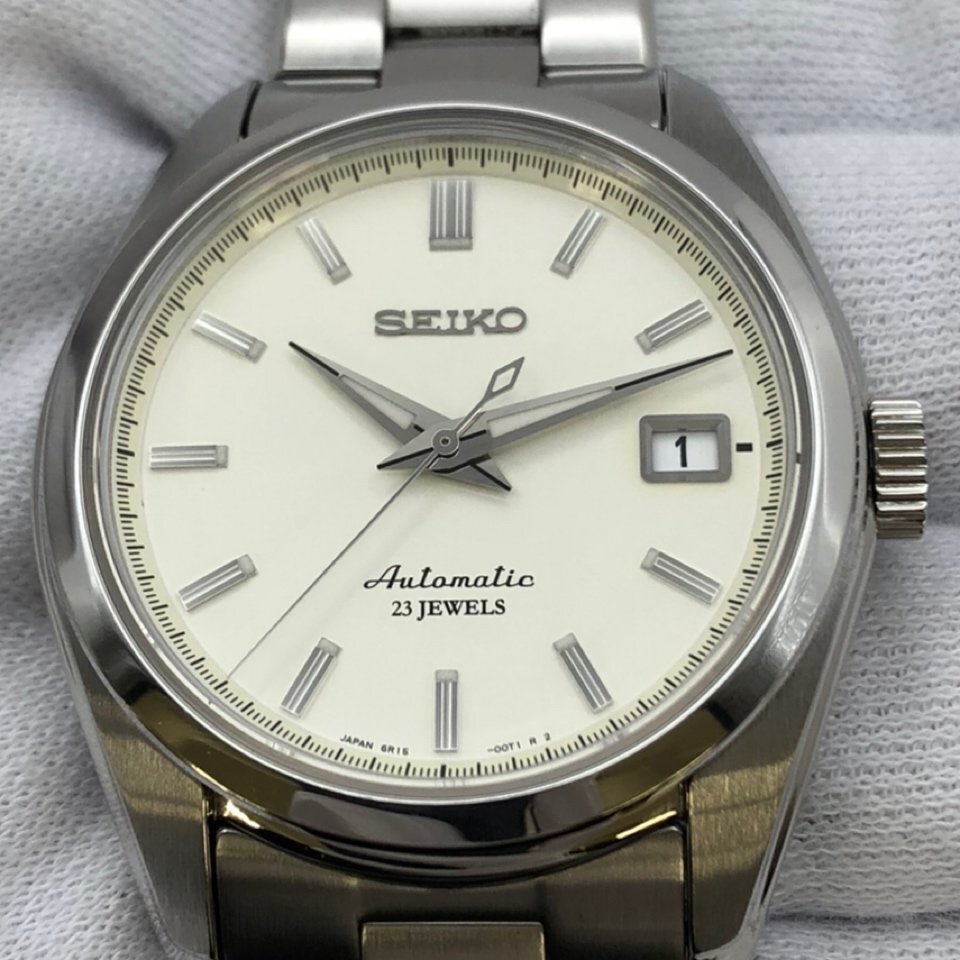 1円~/SEIKO/セイコー/Automatic/6R15-00C1/23石/3針/デイト/裏スケ/純正ベルト/箱・付属品付/自動巻/メンズ腕時計/稼動品/ジャンク/S065