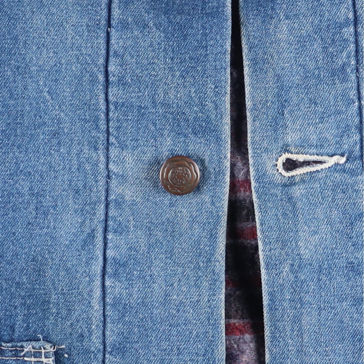 | 着用感: メンズXL 表記サイズ: 不明 着丈: 77.5cm 身幅: 64cm 肩幅: 50.5cm 袖丈: 65.5cm ![]() | ![]() ランク:C USEDデニムですので使用感、擦れ、色落ちなどございますが、まだまだご愛用していただけます。 古着という事をご理解の上ご注文よろしくお願いします。 【状態追記】 ●前、左右襟・前立て全体・左右腹部・左右裾・右袖先に汚れ 右袖先に擦れ ●後、襟全体・左袖先に汚れ 左右袖先に擦れ ●内側、全体的に毛羽立ちあり ●内側、襟全体・左右腕先に汚れ 左右腕先に擦れ 左右脇下にほつれ ●前内側、前立て裏全体に汚れ ●前内側、ライナー側、全体的に汚れあり |