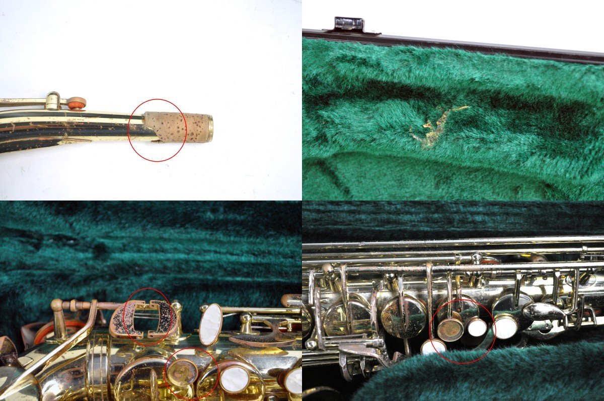 ケルントナーのアルトサックスが入荷致しました。 中古品のため傷や汚れ、サビ等の使用感が全体的に見られ、 コルクの破損、テーブルキーのローラーや指貝の欠品などの不備がございます。 音だし確認も行いましたが、ところどころ出づらい音があり、 タンポやキーバランスの交換・調整が必要な状態でした。 以上の事からジャンク品としての出品ですので、予めご了承ください。 詳しい商品状態につきましては写真よりご確認くださいませ。 この機会に是非ご検討宜しくお願い致します。 【詳細】