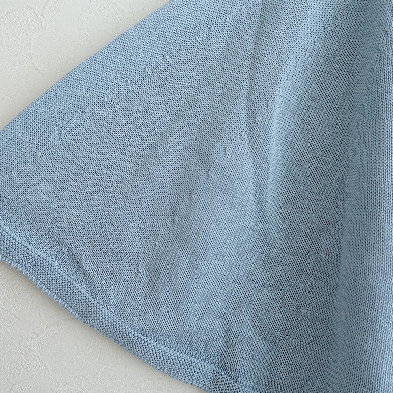 | IENAのコットンギマフレアスリーブプルオーバーです。 カラーはライトブルーでリネンの様な風合いのポンチョ風プルオーバーです。袖のフレアシルエットがポイントで、ふんわりとケープのような雰囲気です。定価(メーカー希望小売価格)は13,200円のお品物です。 |