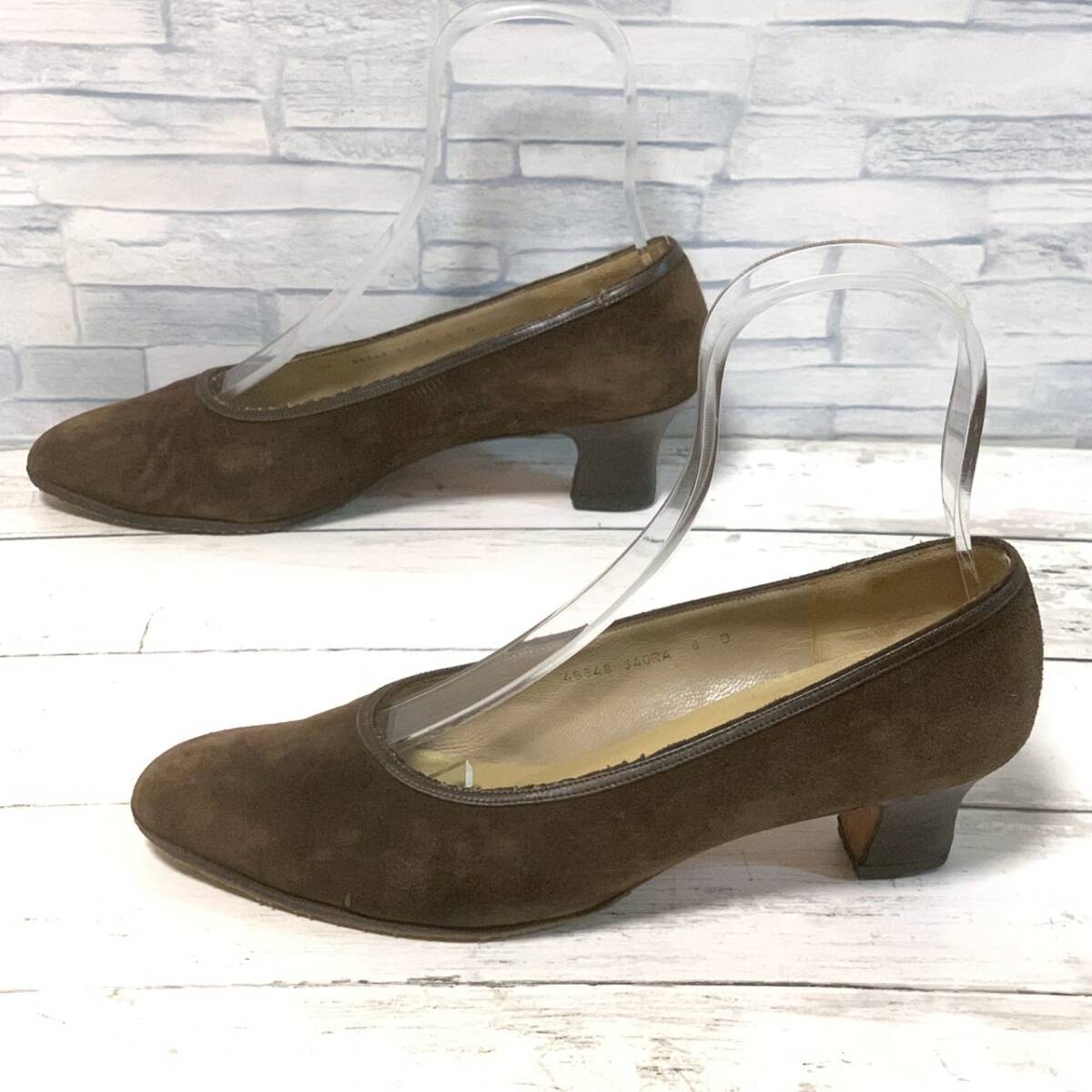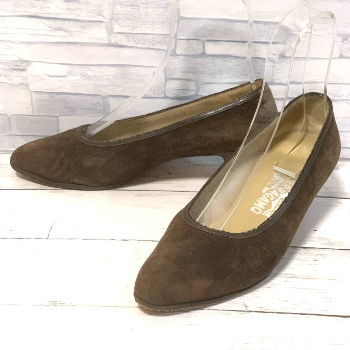 R9678bA Salvatore Ferragamo サルヴァトーレフェラガモ サイズ8(24.5~25cm位)ヒールパンプス ブラウン スウェード ヒール高さ5cm