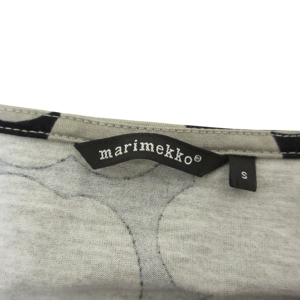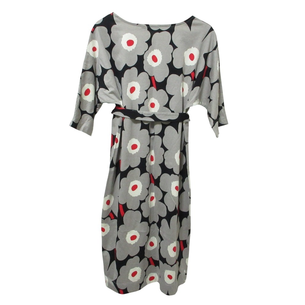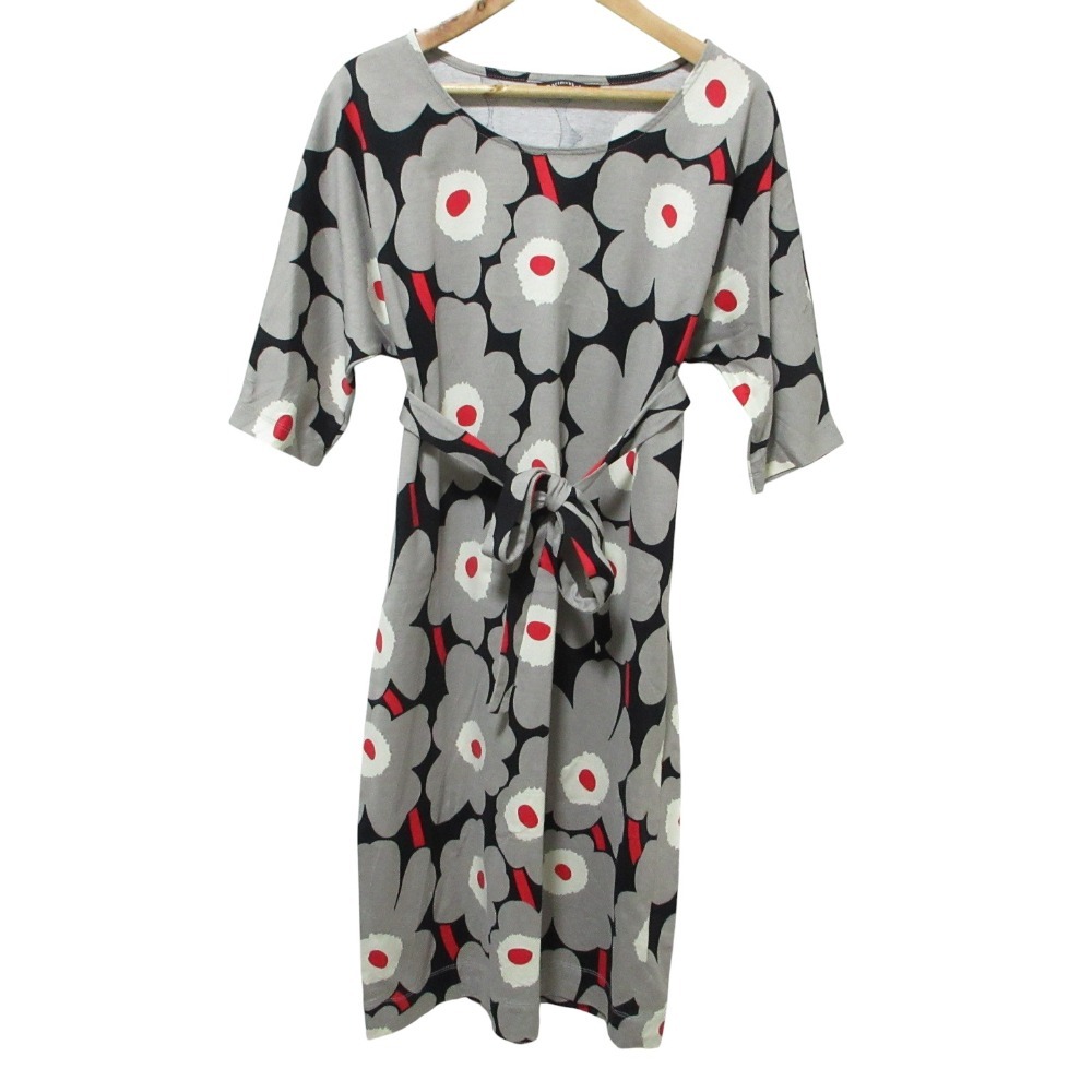 美品 Marimekko マリメッコ ウニッコ 半袖 膝丈 ベルテッド カットソー ワンピース S グレー
