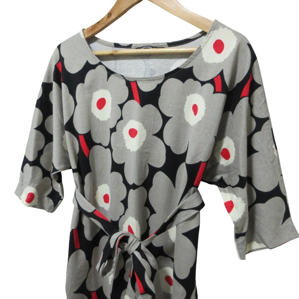 商品名:Marimekko マリメッコ ウニッコ 半袖 膝丈 ベルテッド カットソー ワンピース S グレー