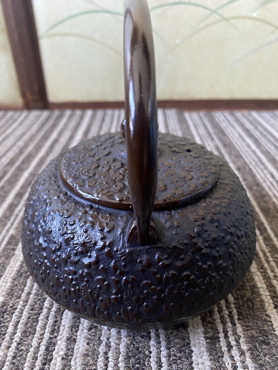 日本製 未使用 菊紋模様 鉄瓶 急須 南部鉄器 茶道具茶器 金属工芸 鉄器 アンティーク 鉄製 煎茶道具 鉄器 南部鉄瓶 在銘