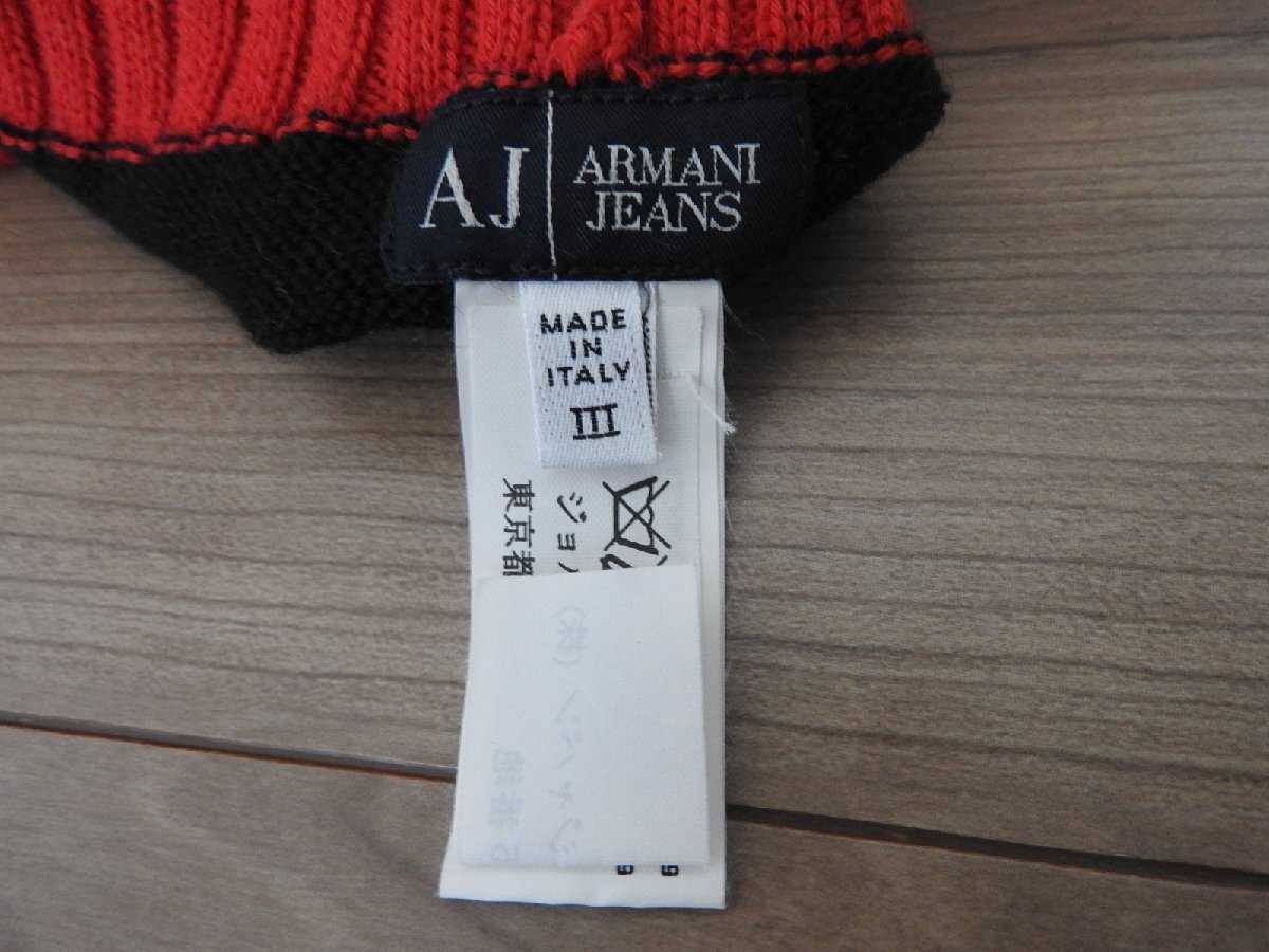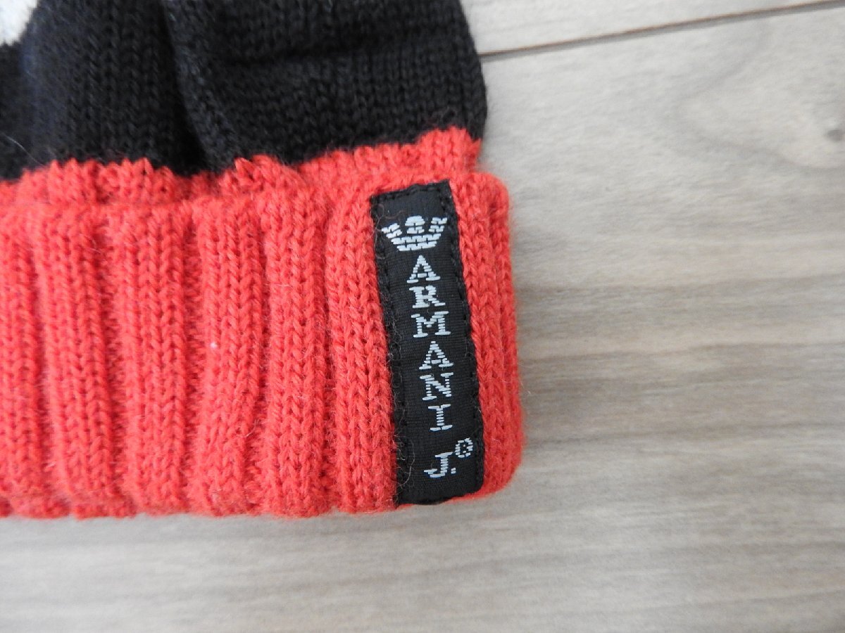 ★★送料無料 ARMANI JEANS アルマーニジーンズ ニット 帽子 ボーダー 赤系
