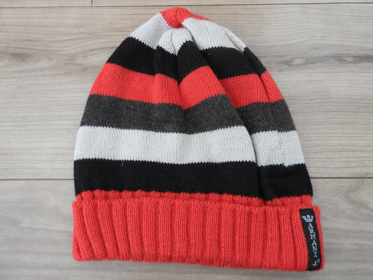 ARMANI JEANS アルマーニジーンズ ニット 帽子 ボーダー 赤系になります。