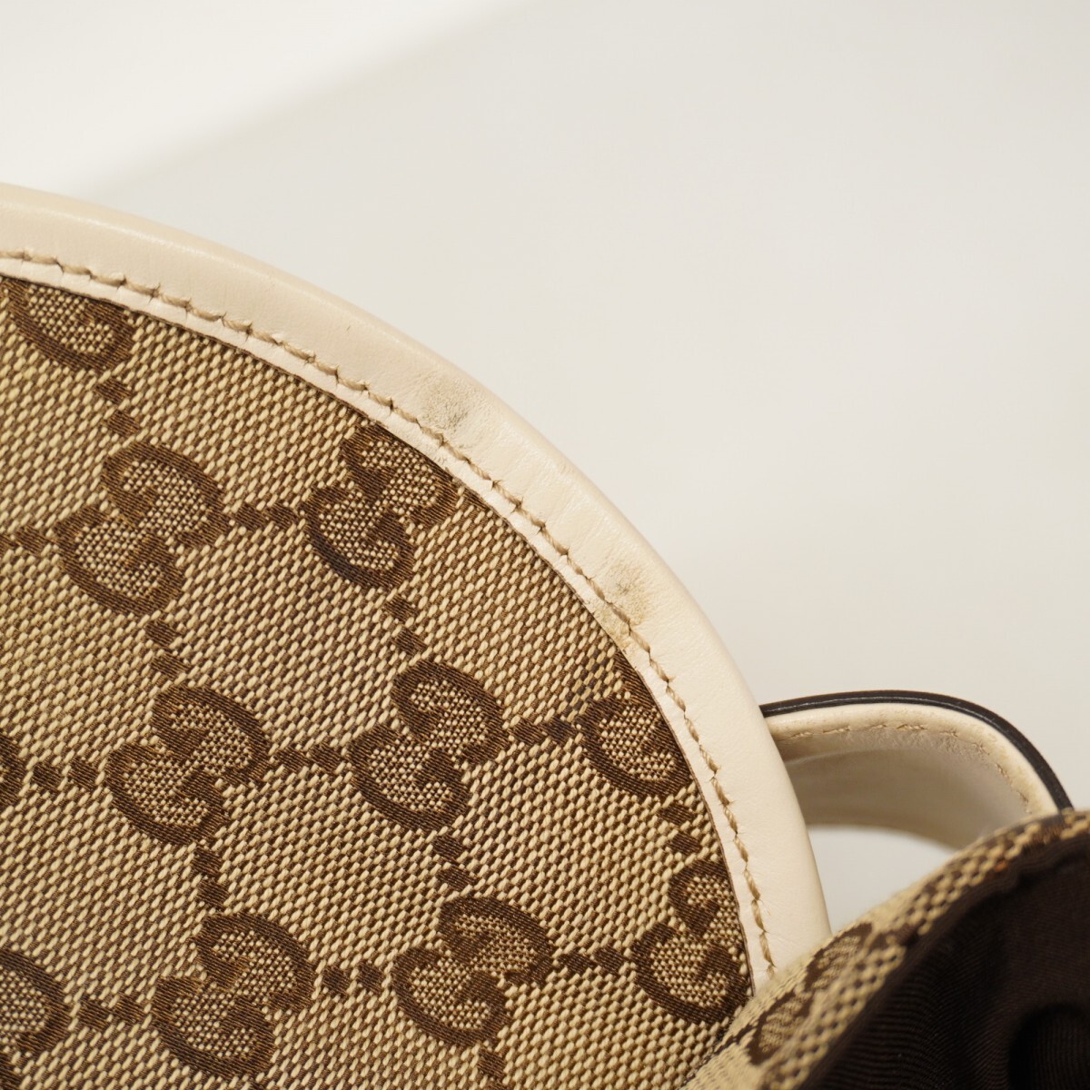 【5md4999】グッチ ウエストバッグ GGキャンバス 145851 キャンバス ベージュ アイボリー シルバー金具【中古】レディース