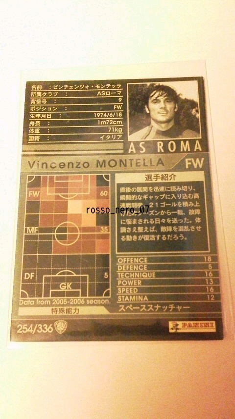 ☆WCCF2005-2006☆05-06☆254☆白☆ビンチェンツォ・モンテッラ☆ASローマ☆Vincenzo Montella☆AS Roma☆