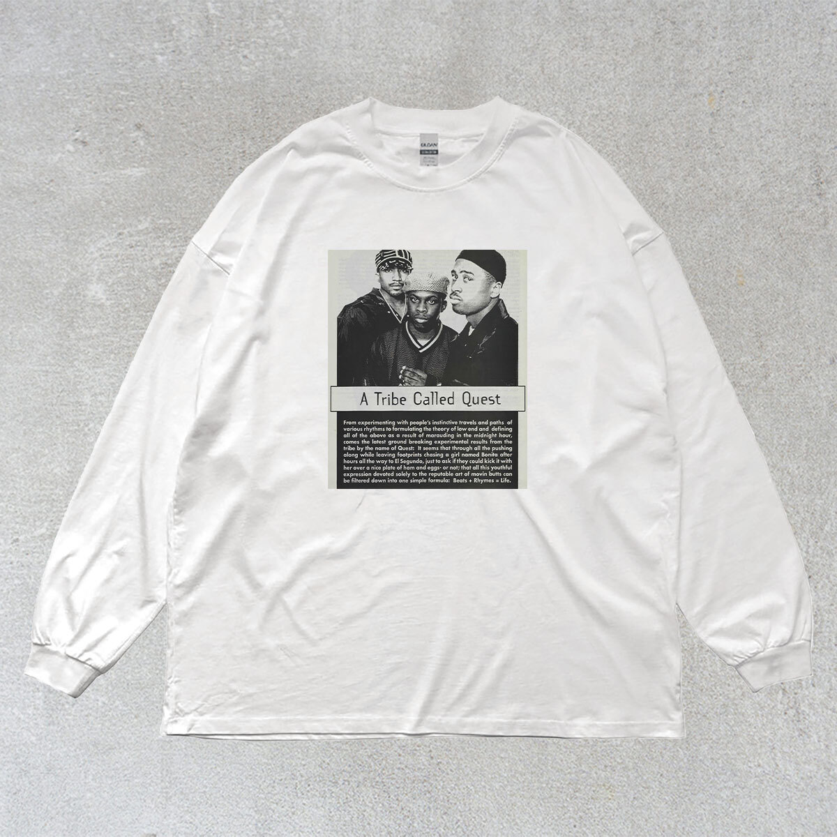 ア トライブ コールド クエスト A Tribe Called Quest ATCQ フォトプリント リブ付き 長袖 Tシャツ ロンT 6oz コットン100% シロ M