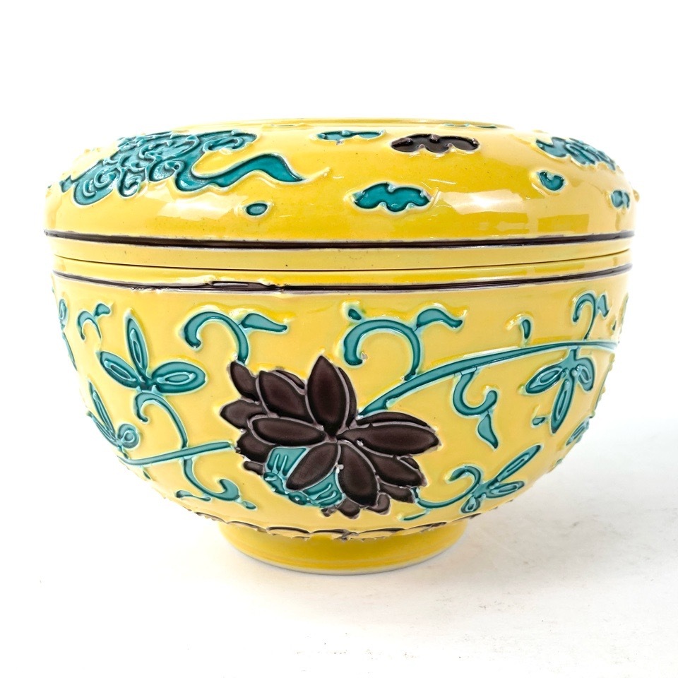 | 商品名 | 平安 太智吉 黄交趾蓮紋菓子器 共箱 茶道具 4224603 |