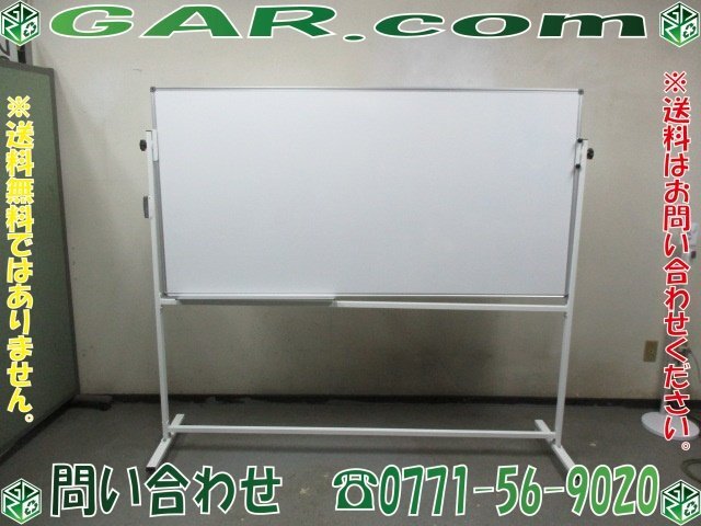ボ22 自立式 ホワイトボード 両面 回転 キャスター付き 白板 オフィス家具 事務用品 京都 引取歓迎!