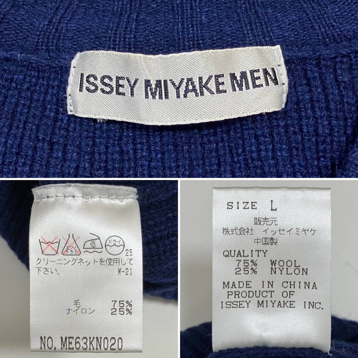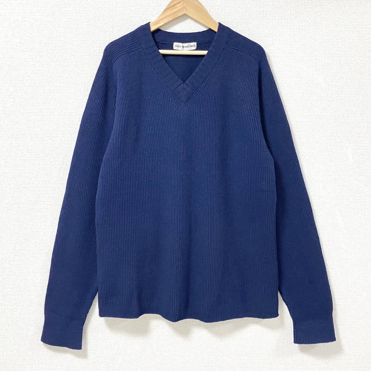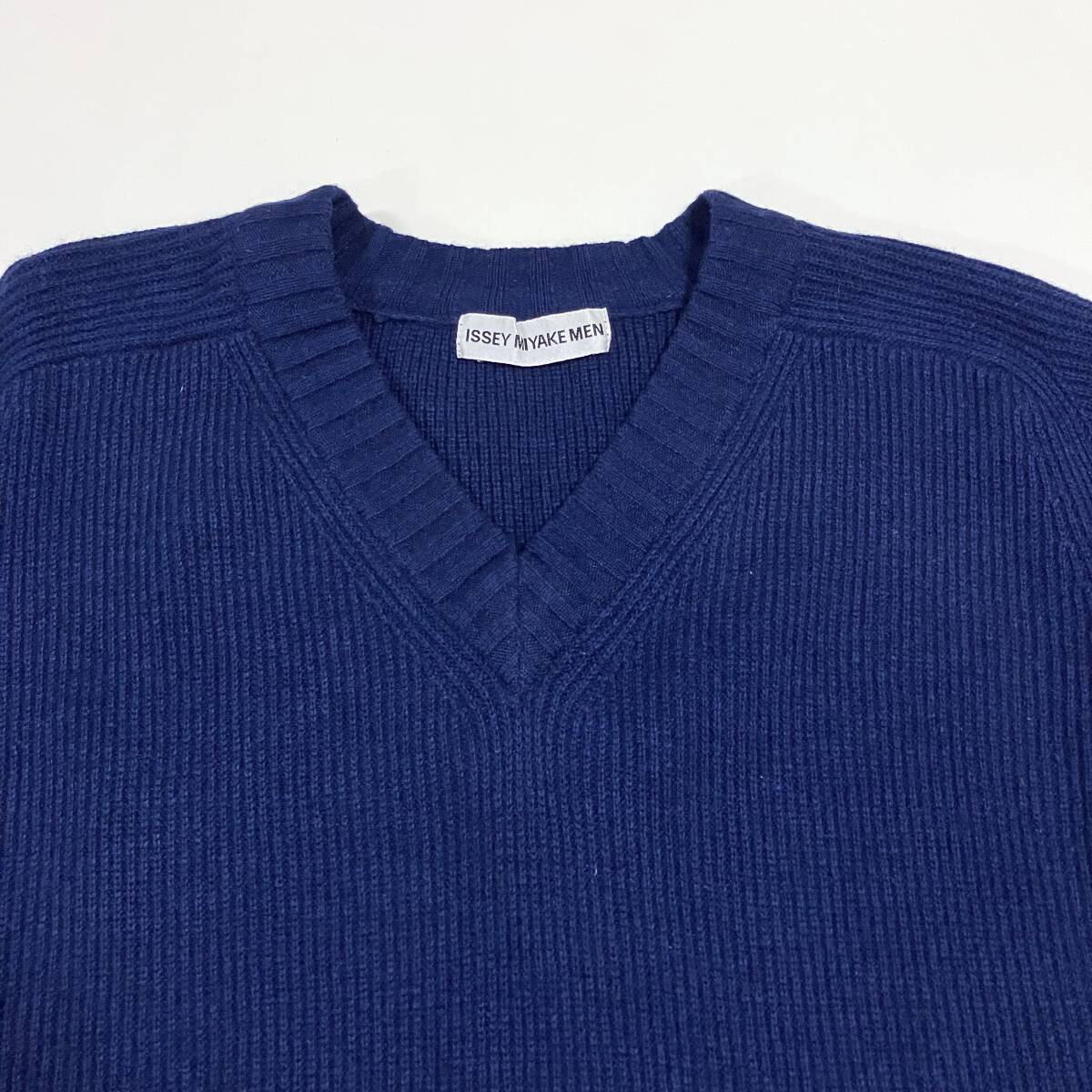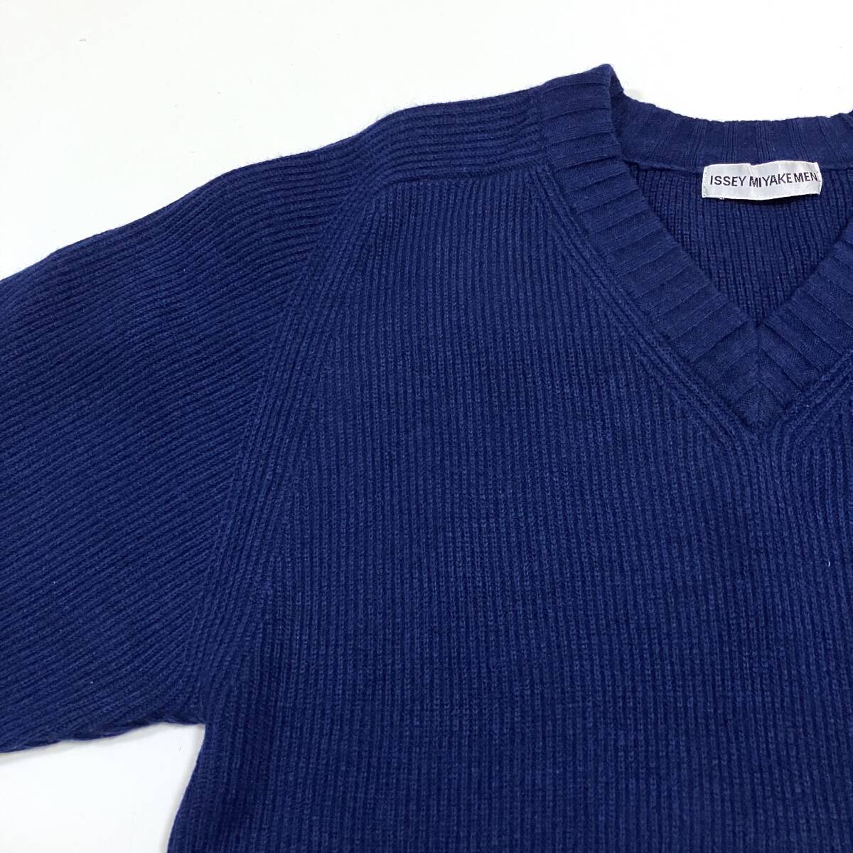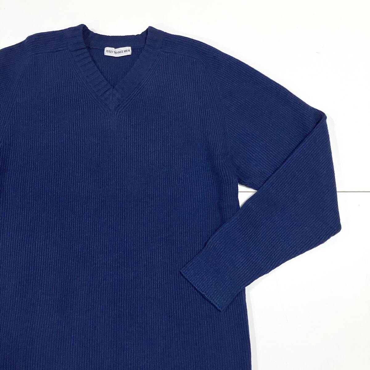 90s ISSEY MIYAKE MEN Vネック リブ ウール ニット セーター 無地 ネイビー 紺 Lサイズ イッセイミヤケメン VINTAGE archive 5070030
