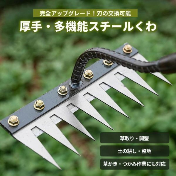 【材料】:ガーデンレーキ除草ツールは、頑丈な構造を備えた金属材料で作られており、耐摩耗性があり、長い間使用できます。