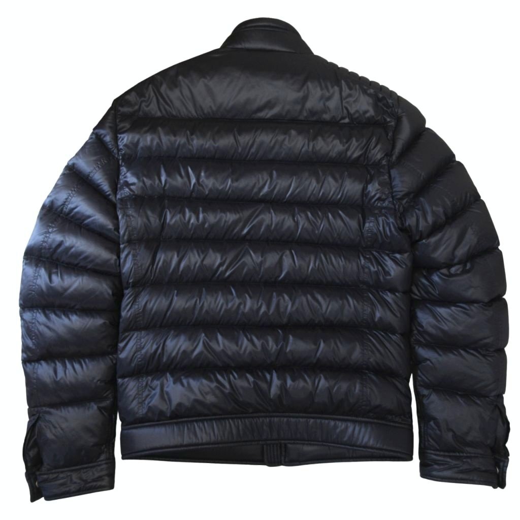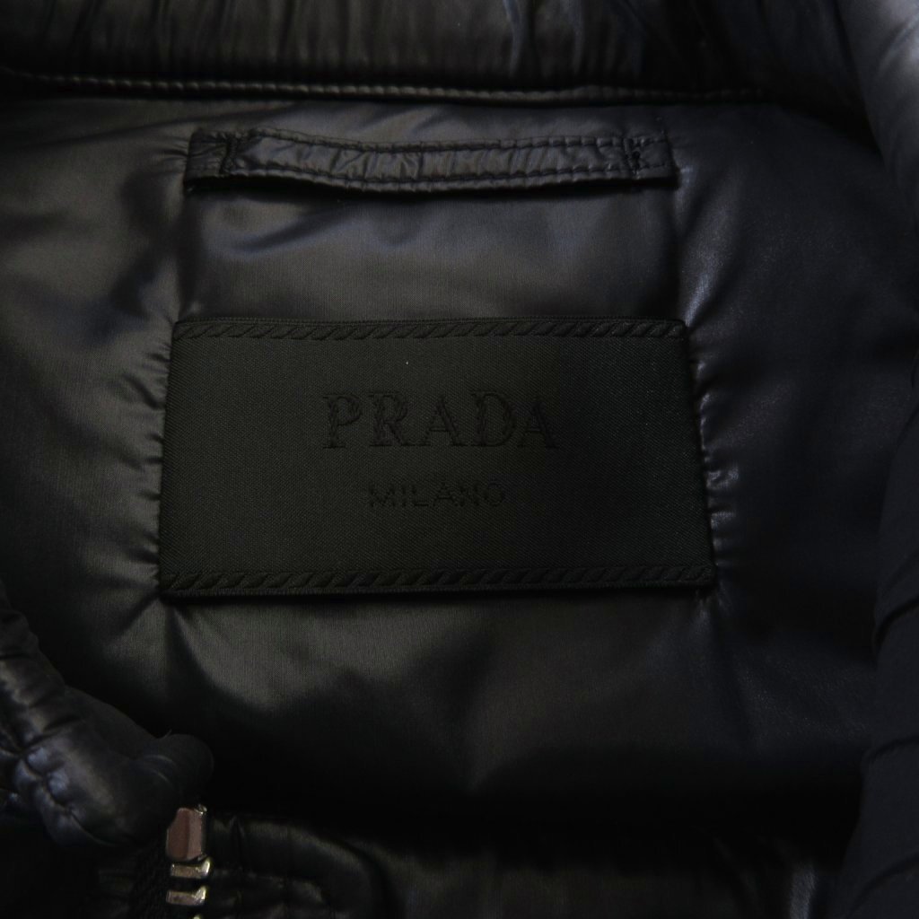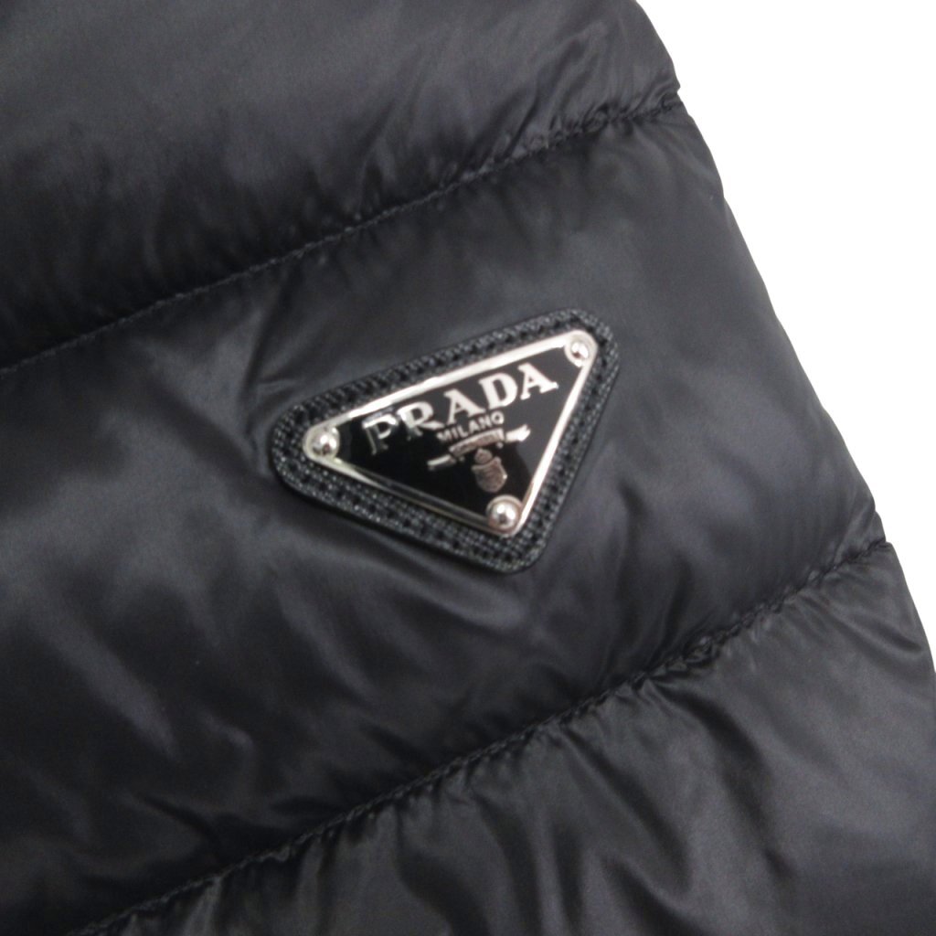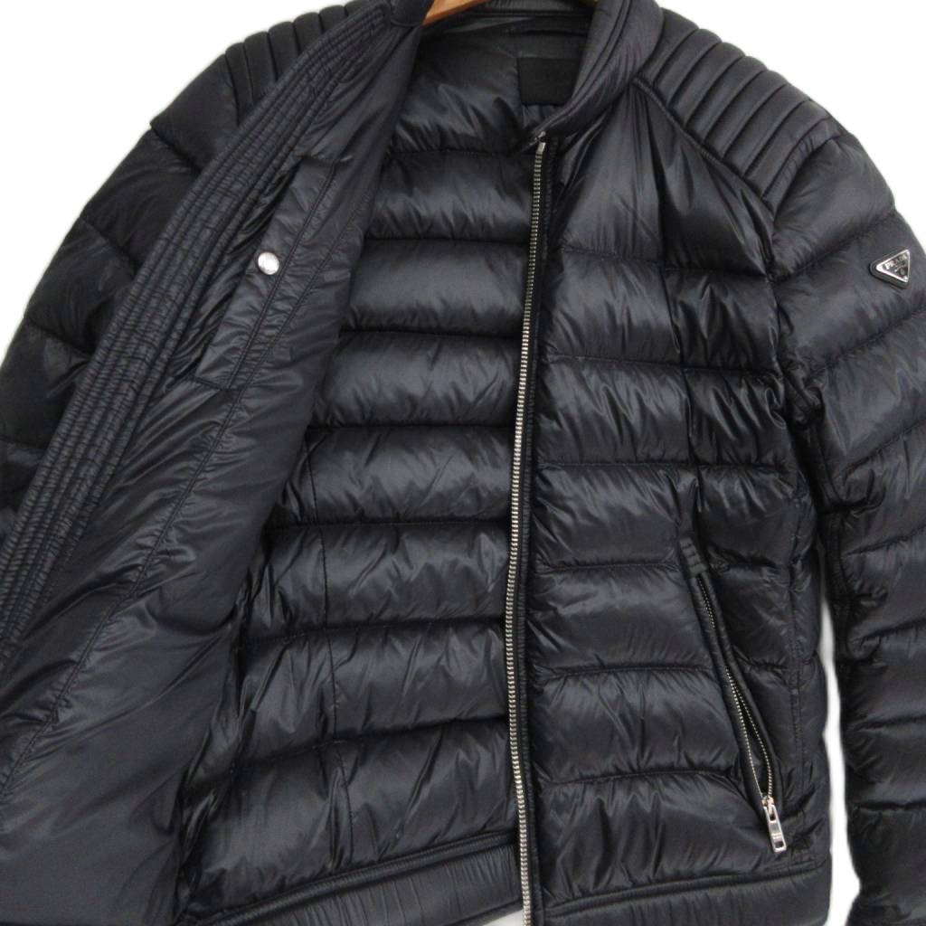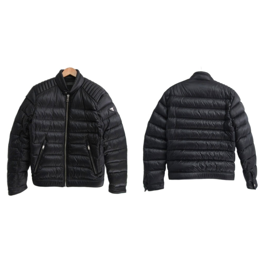 プラダ PRADA 美品 トライアングルロゴ バイカー ダウンジャケット SGB608 ライダース 三角プレート 国内正規 黒 ブラック 46 ■MNK2