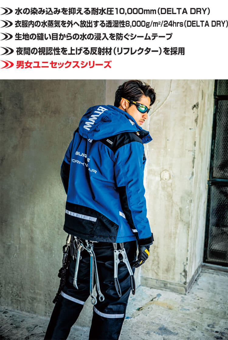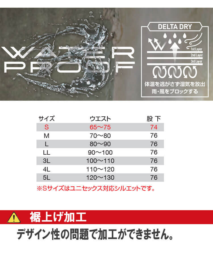 表地 : ナイロンタスラン(耐久撥水加工) PUコーティング樹脂加工(耐水圧10000mm、透湿性8000g/?/24hrs)