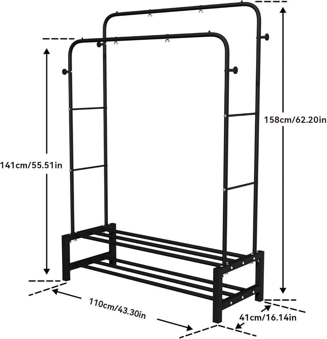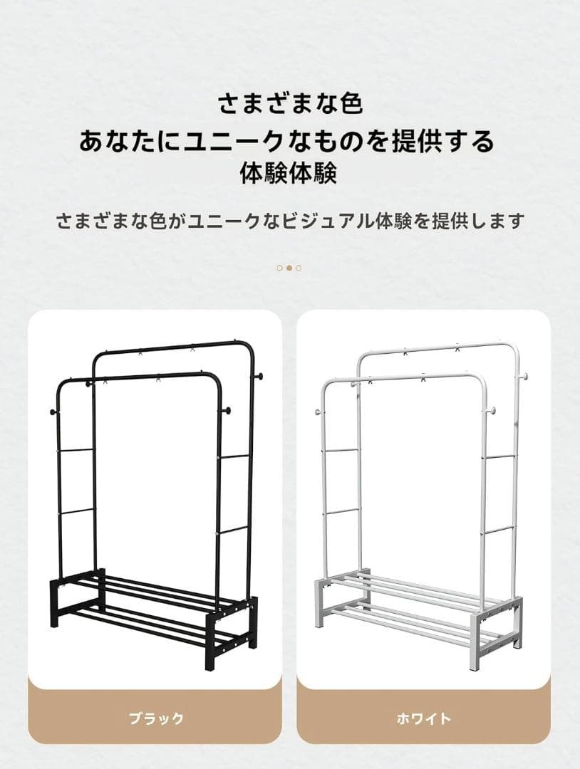 【高強度、高耐荷重】パイプハンガーラックは高品質の金属管を使用した高強度なパイプで、防錆性や耐摩耗性にも優れています。耐荷重は20kgで、太めのパイプでしっかりと安定しています。