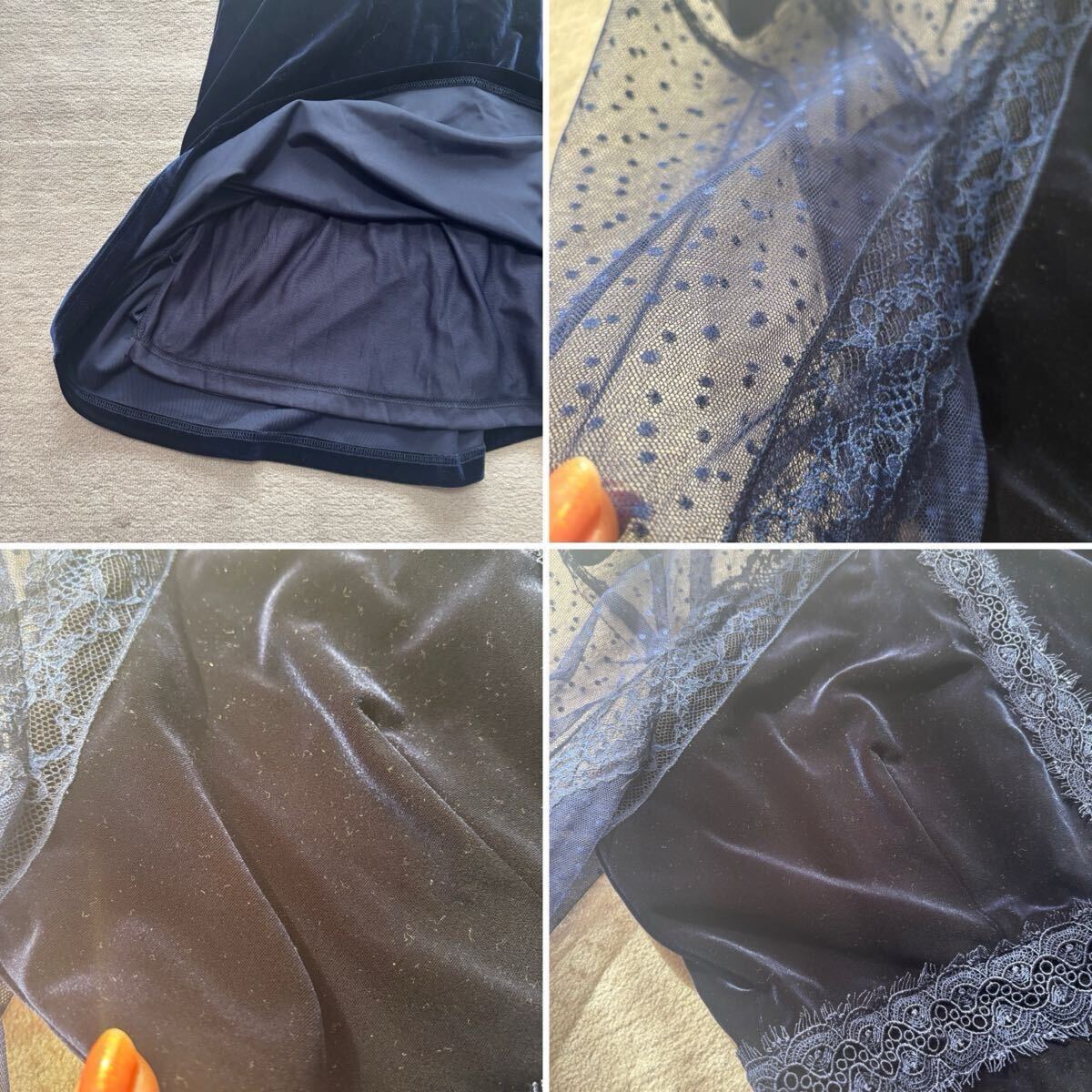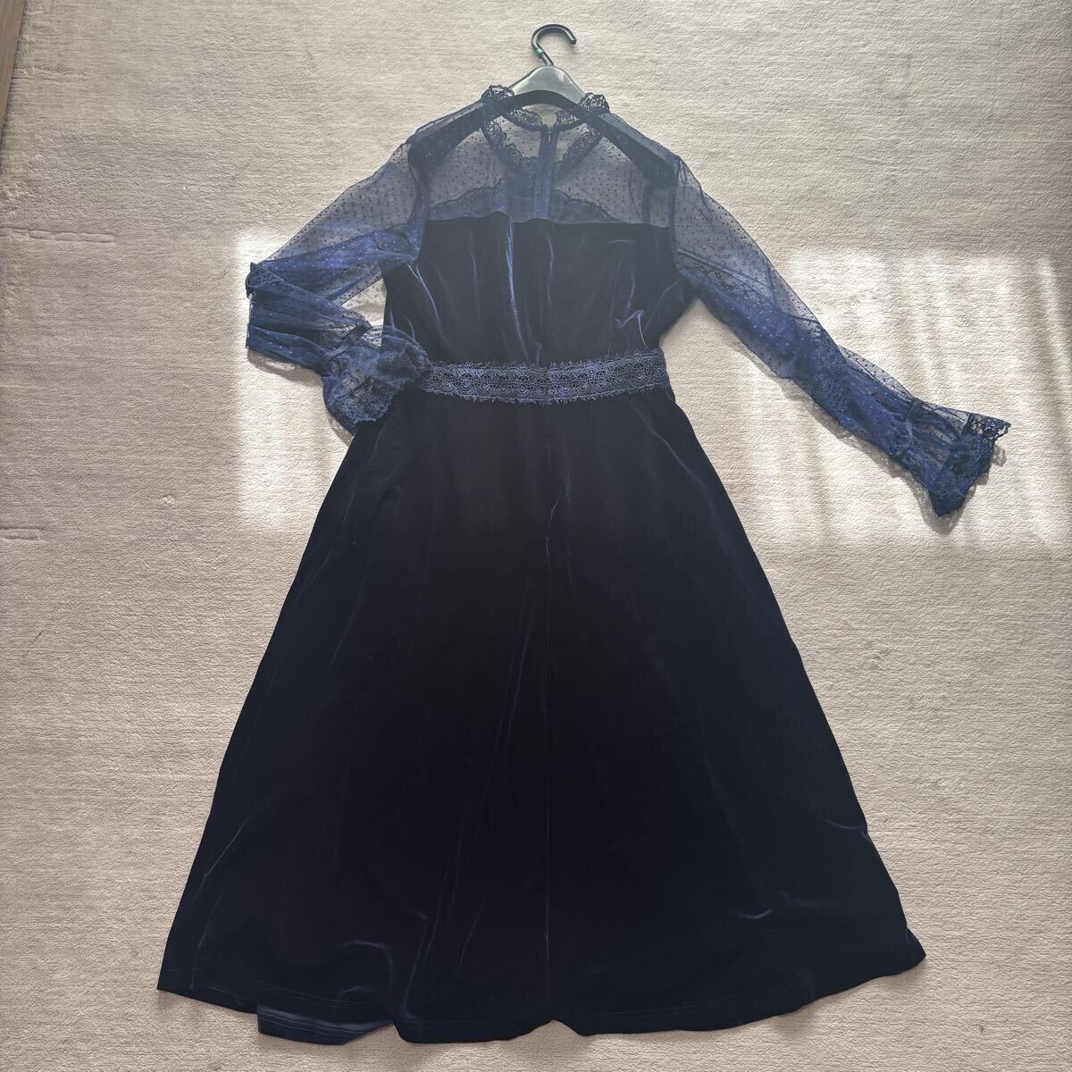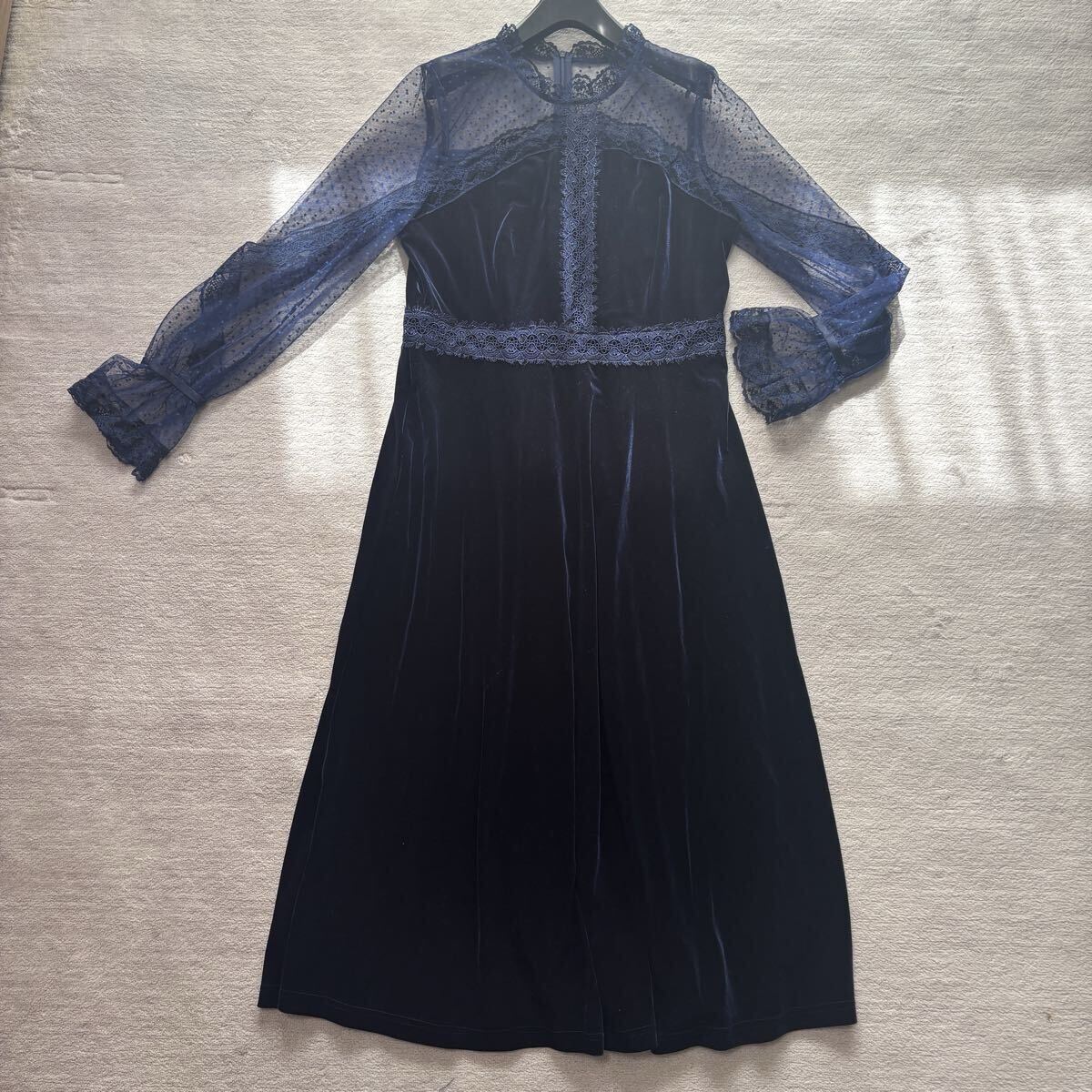 ドレス ワンピース パーティードレス フォーマルドレス 結婚式 披露宴 二次会 ネイビー レース 秋 冬 ベロア フォーマル