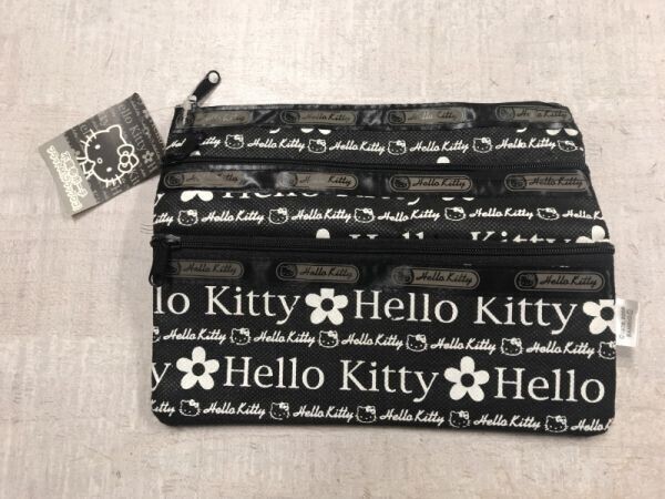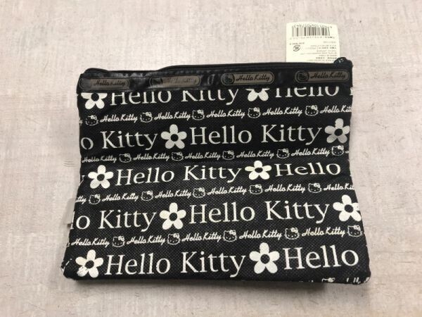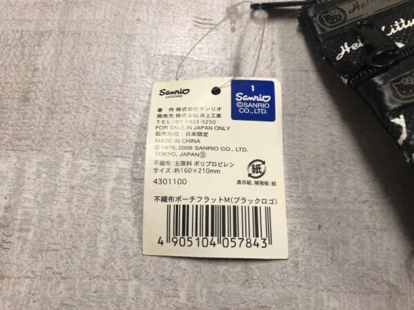 新品タグ付き ハローキティ Hello Kitty サンリオ SANRIO キャラクター グッズ ロゴ総柄 不織布ポーチ 小物入れ レディース 黒 です。