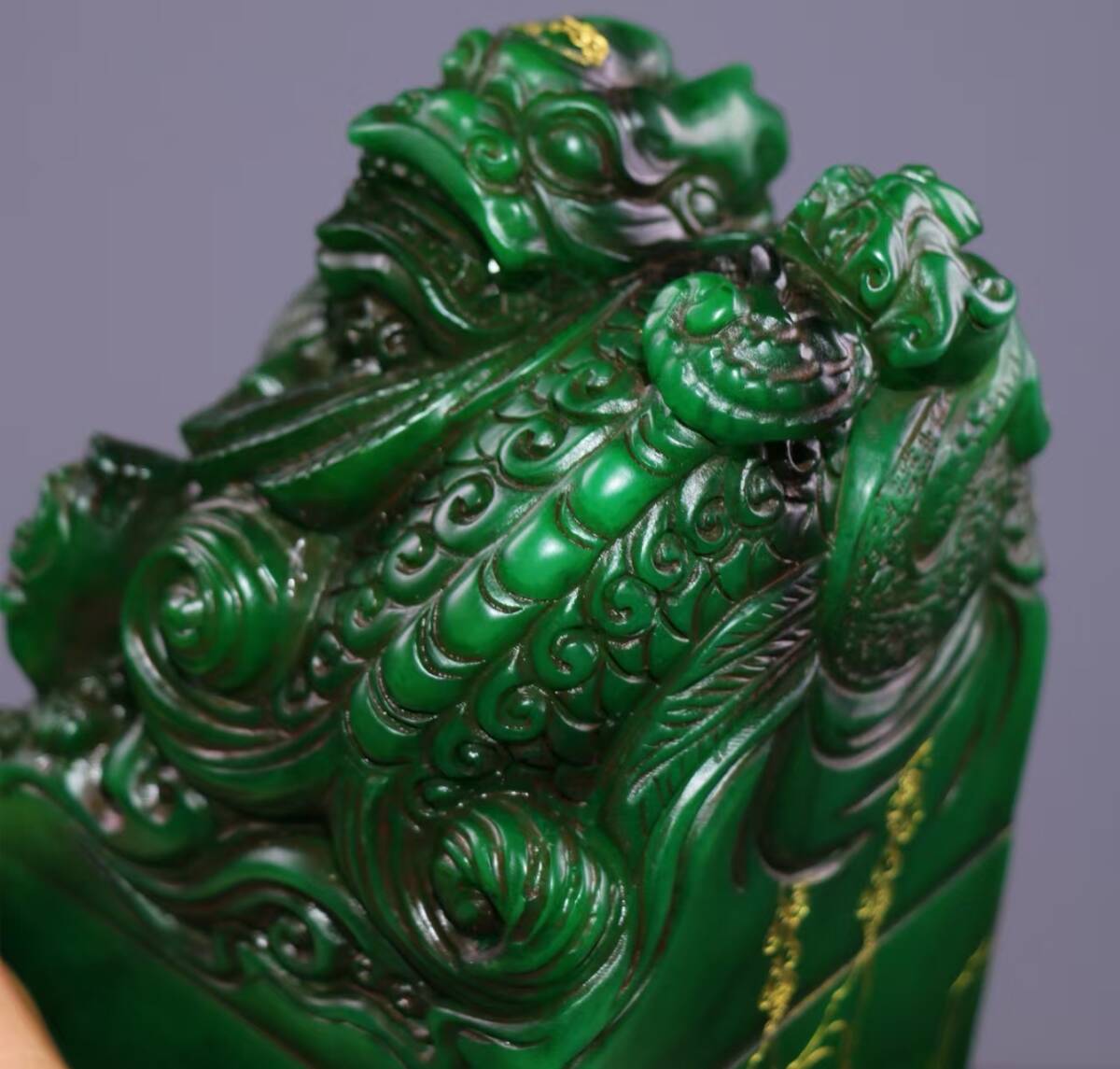 唐物 旧家蔵出 清時代 古緑田黄寿山石 神竜玉璽 印章 印鑑 天然石 文房具 書道具 古印材 古玉彫 極細工 古置物 古董品 時代物 古美術127