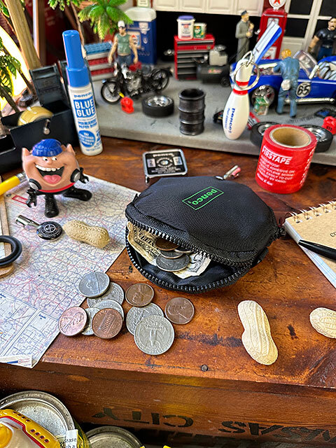 丸型のコインポーチをダブルファスナー仕様にして、中で部屋を別々に分けたっていう・・・・画期的なポーチ!