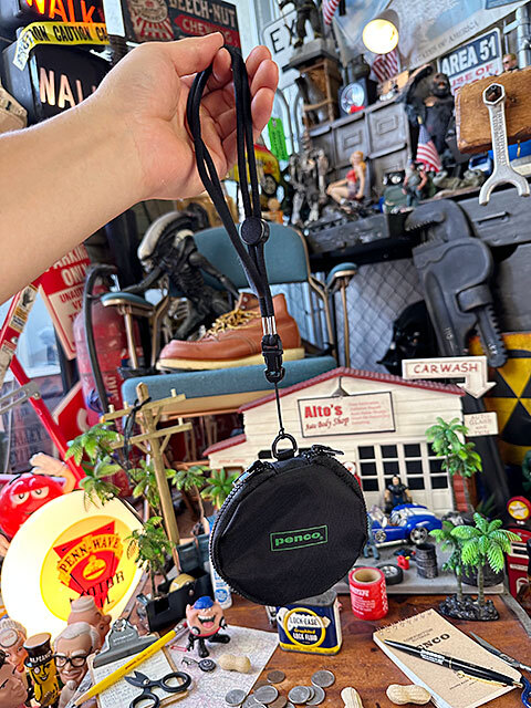 100均とかでネックストラップを買ってきて、ポーチの先端に付いてるDカンに取り付けると、首から提げて使えるので便利ですよ!