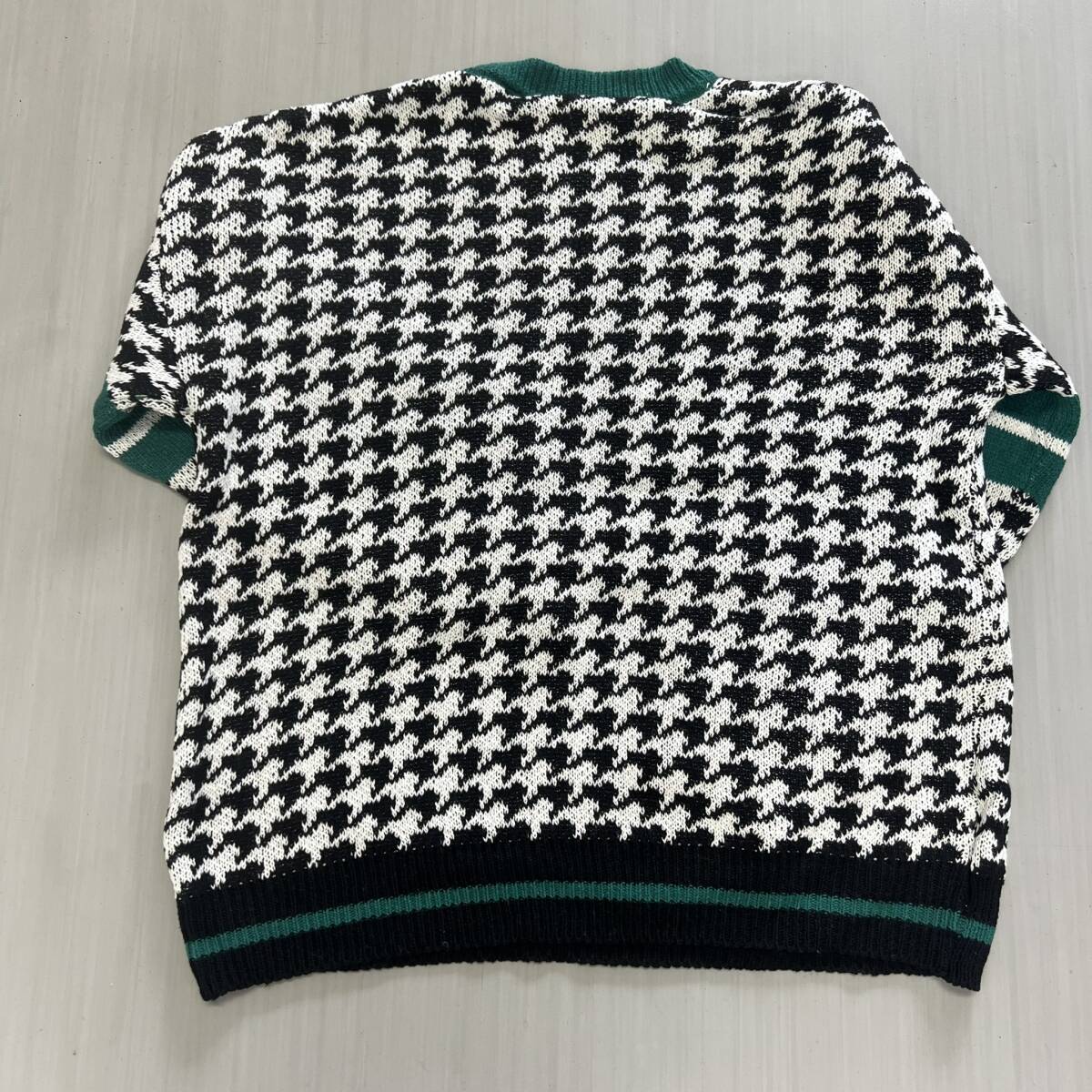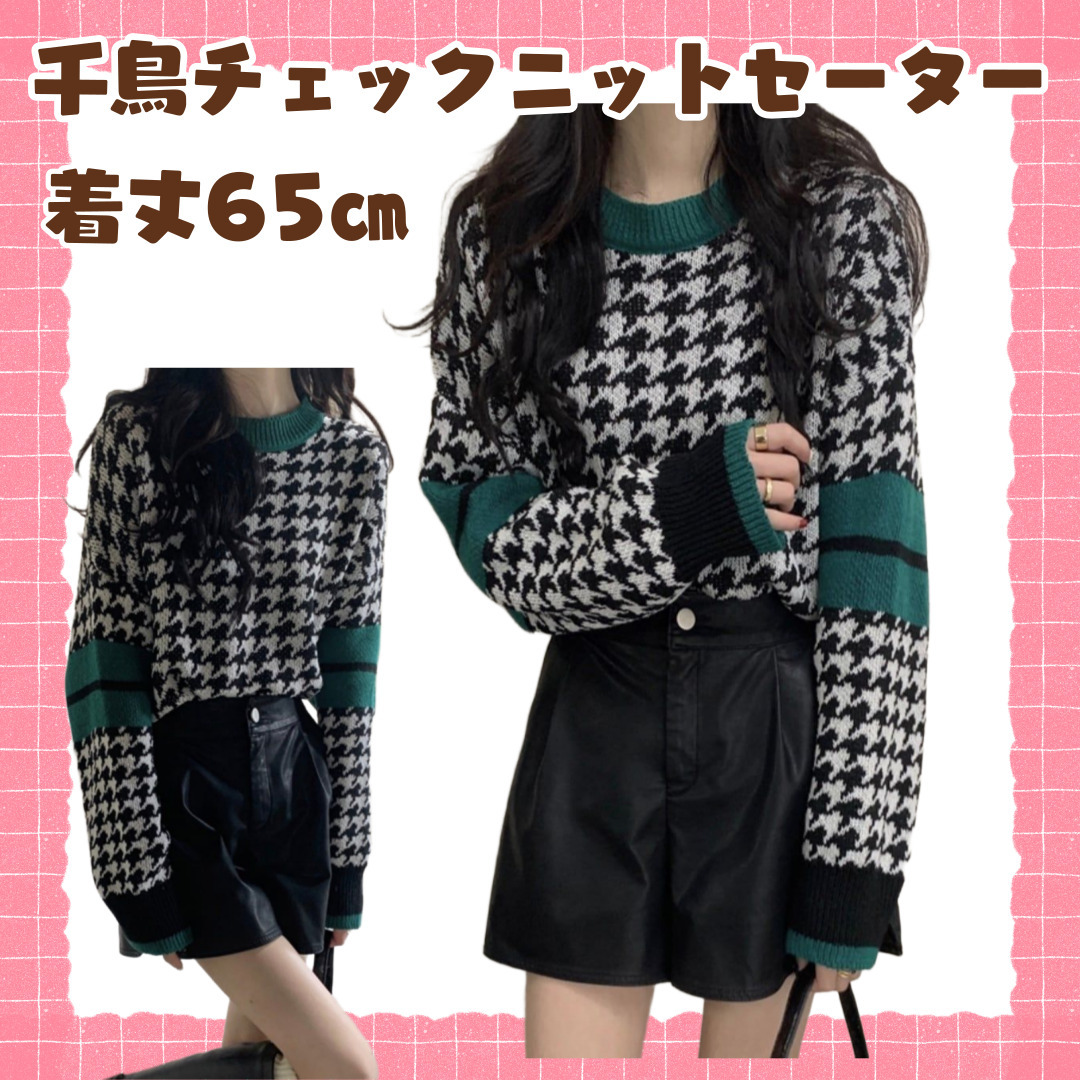 ◆新品未使用◆新品フリーサイズ丈65㎝レトロ 千鳥チェック ニットセーター ブラック004730F