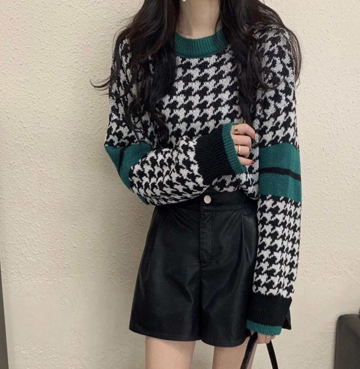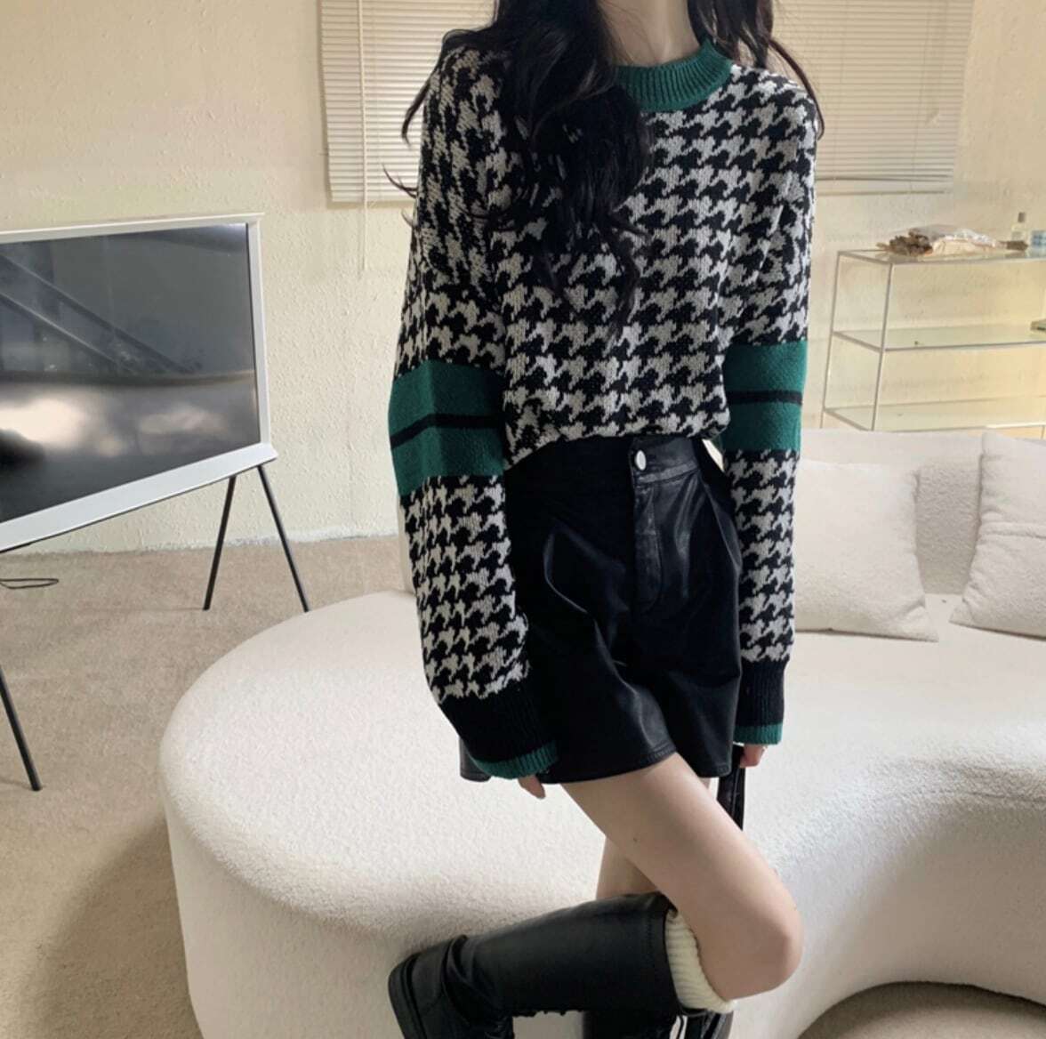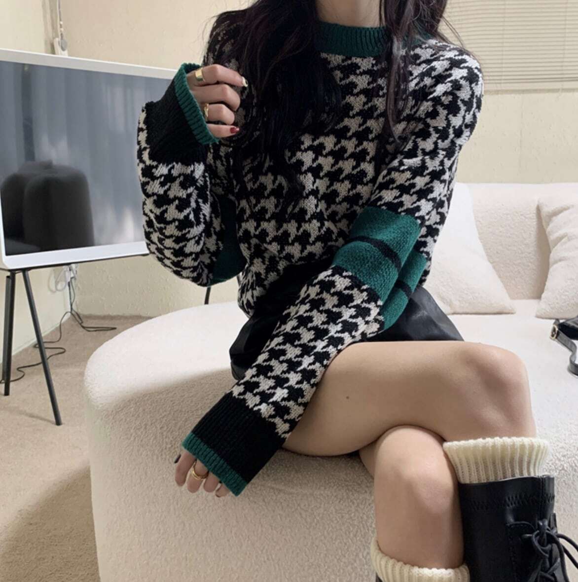 千鳥柄のレトロチックなデザインがオシャレなニットセーターです。